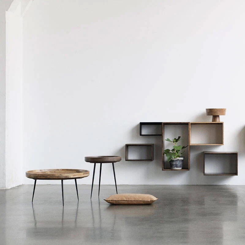 Editée par Mater, la collection de guéridons et tables basses Bowl concilie l’artisanat indien avec la simplicité du design scandinave. Le plateau est réalisé en bois de manguier issu de sources durables. Il met en valeur les compétences de Kharadi, une communauté indienne de tourneurs de bois et soutient leur artisanat local. La table Bowl peut être utilisée seule ou en composition de plusieurs tailles. La finition utilisée sur le plateau est une laque à base d’eau et sans plomb. Les pieds sont réalisés en tiges d’acier fraisées et peuvent être détaché pour faciliter le travail et le transport.