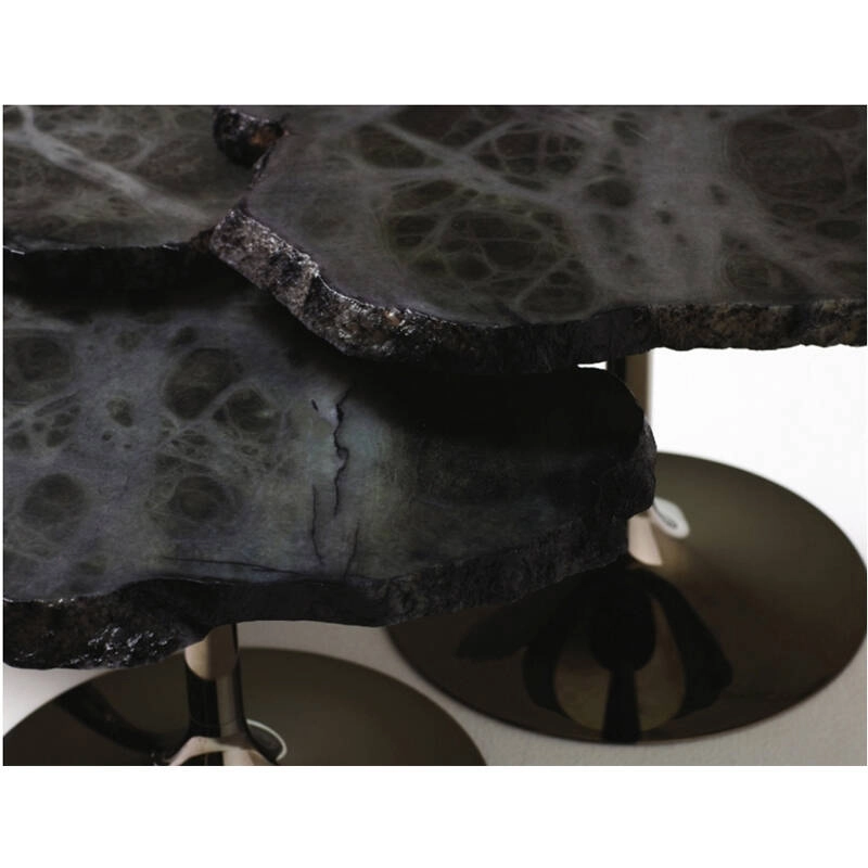 Cicladi est une collection de petites tables avec plan en albâtre de différentes hauteurs et couleurs. Editées par Edra, Ces petites tables se distinguent par leurs bords irréguliers et dentelés qui les font ressembler à des îles vues d'en haut. Le plateau est monté sur un pied central en acier brossé disponible dans différentes finition brillantes. Déclinées en trois hauteurs, les tables Cicladi peuvent être utilisées seules ou en composition de plusieurs éléments. Grâce au matériau utilisé, chaque table est unique de par sa forme et sa couleur.