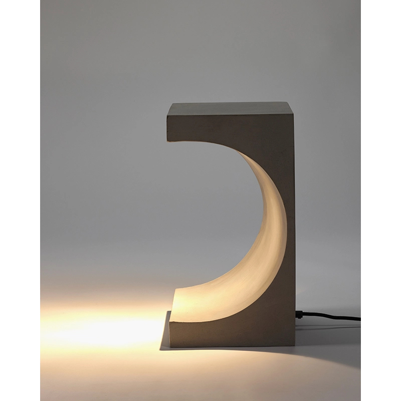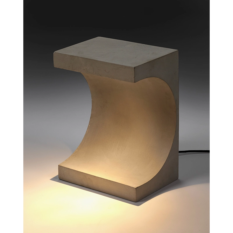 La lampe à poser et table basse Concrete Tangent, conçue par le designer français Patrick Paris et éditée par Serax, se caractérise par son esthétique épurée et sa fonctionnalité innovante. La forme de la lampe unique en demi-lune, éclairée de l'intérieur, diffuse une lumière douce et homogène, créant une ambiance chaleureuse. Concrete Tangent ne se contente pas de simplement d'illuminer les espaces, elle peut également servir de table d'appoint pratique. Son design en béton gris offre à cet objet une allure moderne et intemporelle, lui permettant de s'intégrer dans de nombreux styles de décoration intérieure. La table basse et lampe à poser Concrete Tangent ajoute une touche de sophistication grâce à son style sobre et contemporain, associé à sa fonctionnalité polyvalente.