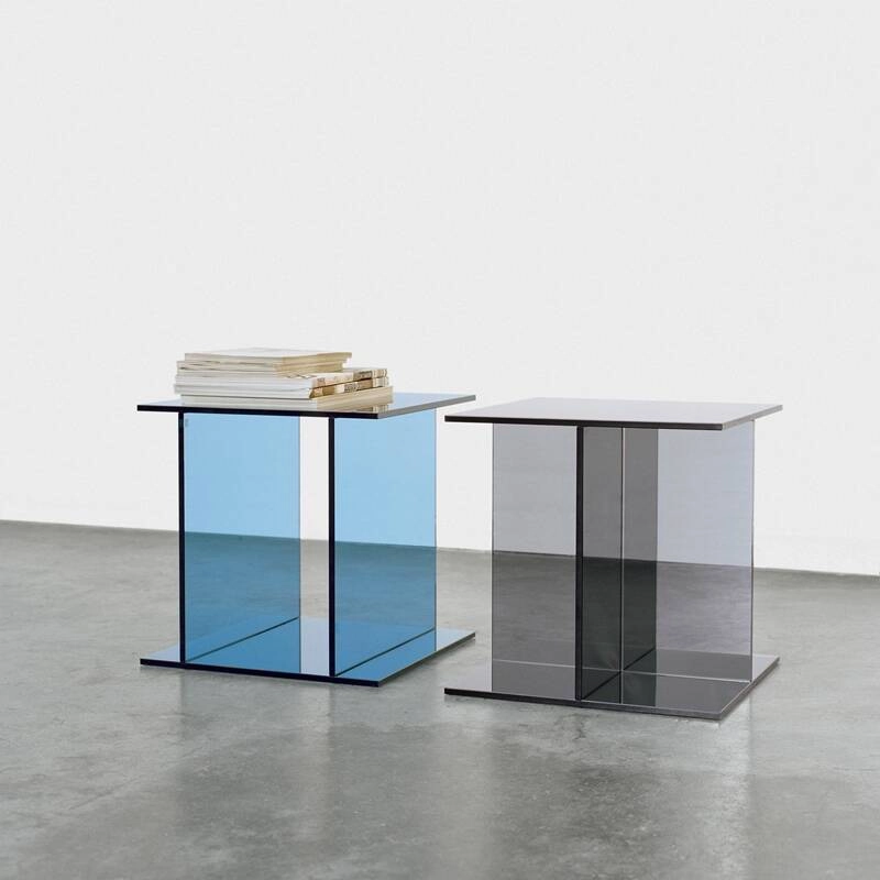 Philipp Mainzer dessine pour la marque  E15,  une série de petites tables réalisées en verre coloré : Drei et Vier. Composée de quatre panneaux de verre, la version Drei peut être utilisée dans n'importe quel sens, faisant référence aux formes épurée du Bauhaus et au tabouret Ulm. Conçue après la Drei, la table Vier est réalisée à partir de cinq pièces de verre et peut servir de rangement grâce à sa base symétrique découpée en quatre parties.