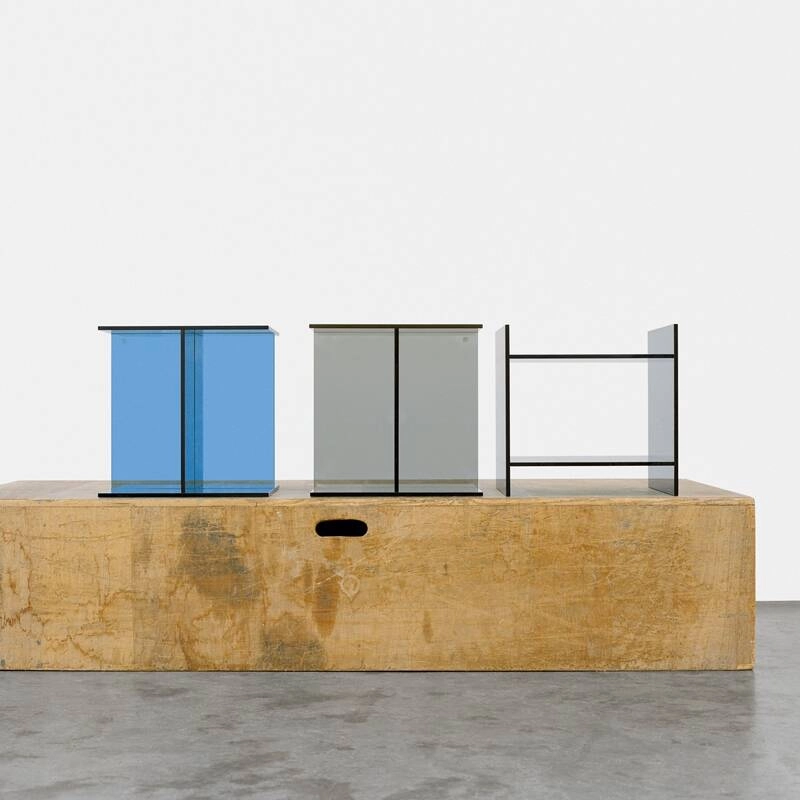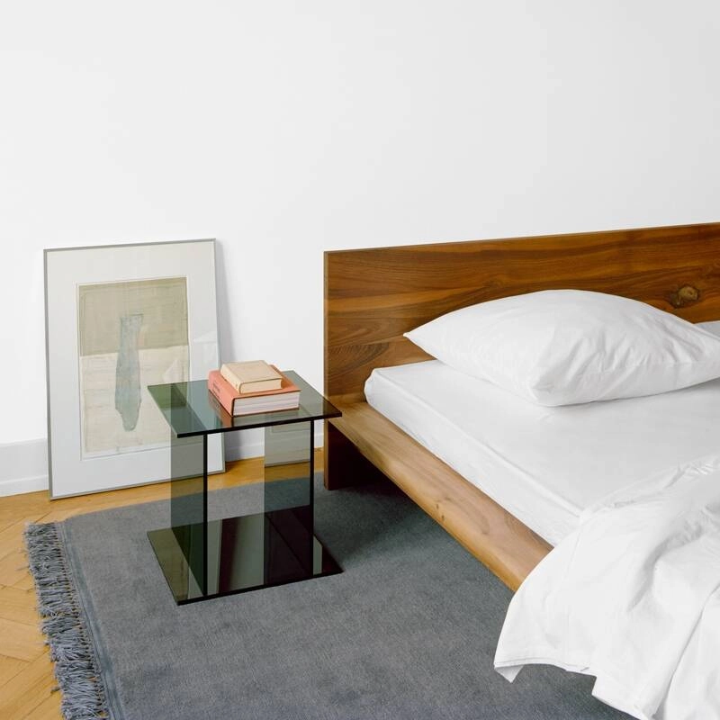 Philipp Mainzer dessine pour la marque  E15,  une série de petites tables réalisées en verre coloré : Drei et Vier. Composée de quatre panneaux de verre, la version Drei peut être utilisée dans n'importe quel sens, faisant référence aux formes épurée du Bauhaus et au tabouret Ulm. Conçue après la Drei, la table Vier est réalisée à partir de cinq pièces de verre et peut servir de rangement grâce à sa base symétrique découpée en quatre parties.