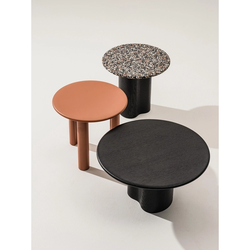 Editée par Arper, Ghia se démarque par ses formes douces et sculpturales, ainsi que par ses matériaux tactiles inspirés de la nature. Cette collection de tables basses insuffle un sentiment d'harmonie et de calme dans tous les espaces, grâce à un équilibre entre formes géométriques organiques.  Grâce à son expressivité et ses nombreuses versions disponibles, la collection de tables basses Ghia Arper s'adapte naturellement à tout type d'environnement, des espaces d’accueil aux espaces résidentiels, des zones lounge aux salons. Deux types de piètement, proposés en 3 hauteurs différentes, soutiennent des plateaux de forme ronde ou organique de dimensions variées, disponibles en MDF, bois et terrazzo vénitien. Ghia permet de créer des compositions très personnelles en combinant différents modèles et en mélangeant les couleurs et les finitions. La collection Ghia Arper est certifiée FSC.