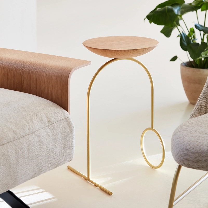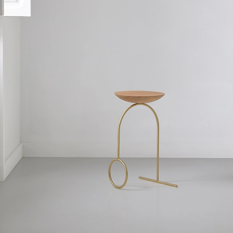Table d'appoint guéridon GIRO Laiton / Chêne VICCARBE