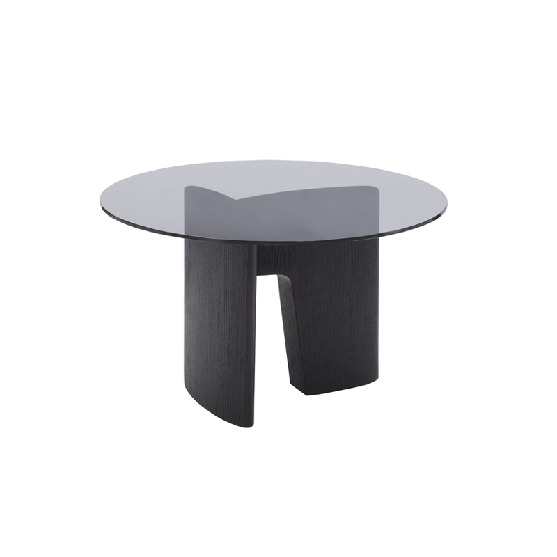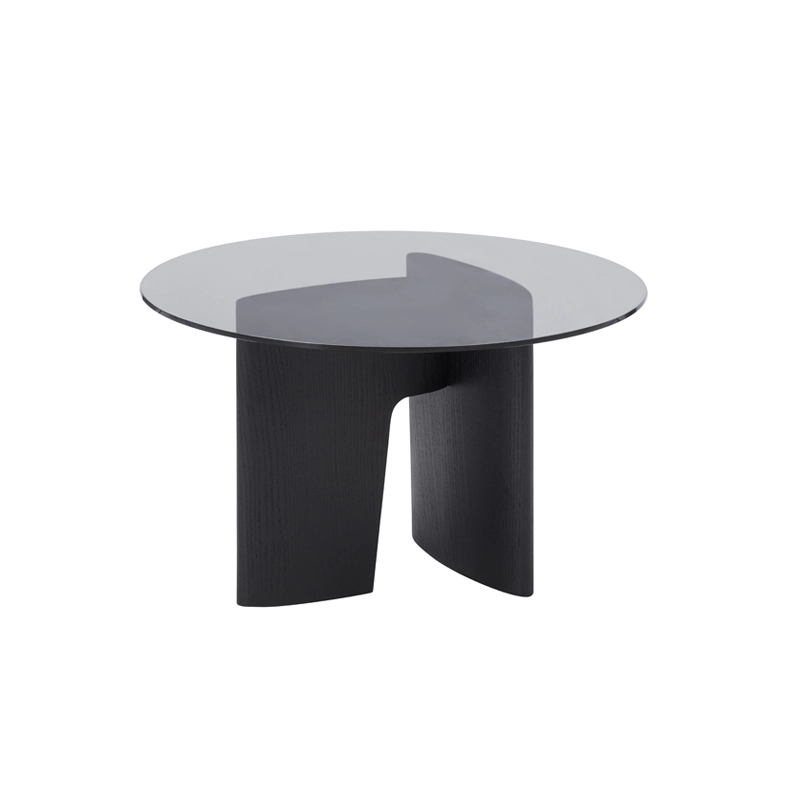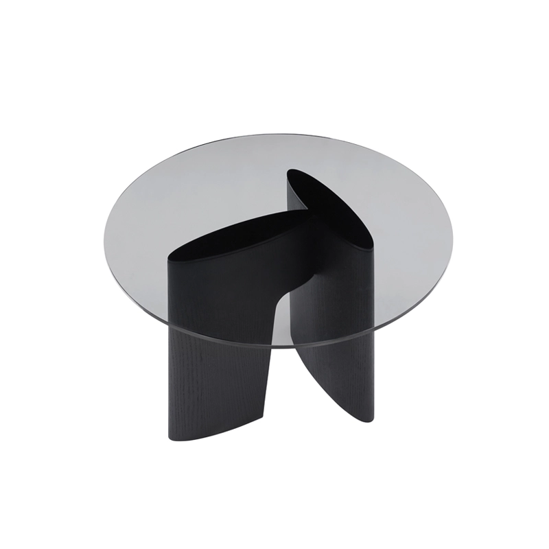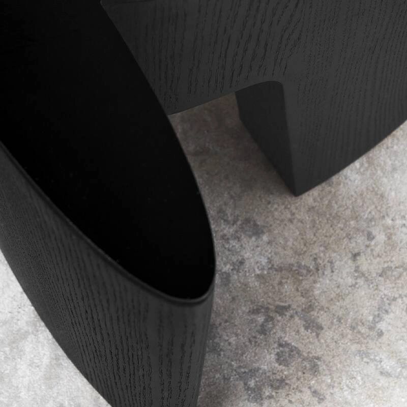 En abaissant le regard, la forme est interrompue par un espace légèrement incliné qui ajoute de la légèreté et contrebalance l'aspect audacieux du design de la table d'appoint