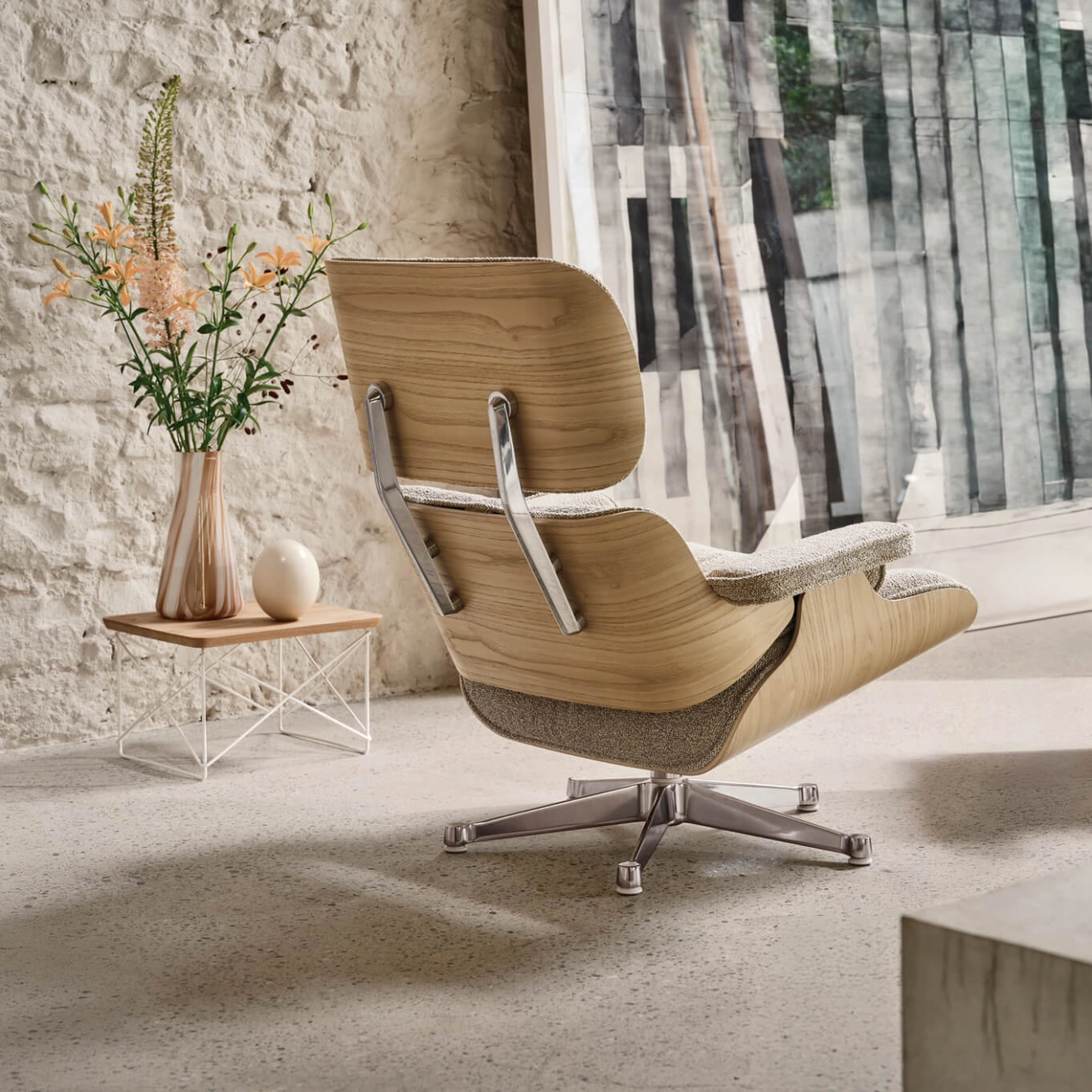 Charles Eames, décédé à 71 ans en 1978 à Saint-Louis, sa ville natale, est l'une des figures emblématiques du design du XXe siècle, ayant su orienter ce domaine vers la production de masse. Architecte de formation, il remporte en 1940, avec Eero Saarinen, le premier prix du concours de design organique du MoMA de New York, ce qui lui permet d'enseigner le design industriel à la Cranbrook Academy. C'est là qu'il rencontre Ray, qui y étudie la peinture. Charles et Ray Eames se marient en 1941 et s'installent à Los Angeles, où ils commencent à expérimenter ensemble les techniques de moulage tridimensionnel du contreplaqué, dans le but de créer des chaises à la fois confortables et abordables.  Leur développement d'attelles et de civières en contreplaqué pour l’armée américaine les pousse à perfectionner cette technologie, qui sera utilisée pour la production de mobilier par Herman Miller (en 1946) puis par Vitra (en 1957). En 1948, Charles et Ray Eames participent au concours « Low-Cost Furniture » du MoMA, et en 1949, ils construisent la maison Eames, qui devient leur résidence privée. Leur célèbre fauteuil Eames Lounge Chair a été commercialisé à plus de 6 millions d'exemplaires depuis sa création en 1956, tandis que l'Aluminium Chair, qui a donné naissance à l'Aluminium Group en 1958, ainsi que le fauteuil pivotant Soft Pad avec son repose-pieds (1969), continuent de séduire les amateurs de design et sont même garantis pendant 30 ans. En plus de leur travail dans le mobilier et l'architecture, Charles et Ray Eames explorent régulièrement d'autres domaines comme le graphisme, la photographie, la réalisation de films et d'expositions. Pour Vitra, la collaboration avec Charles et Ray Eames est d'une importance fondamentale. C'est avec la production de leurs créations en 1957 que l'histoire de Vitra en tant que fabricant de mobilier commence. Toutefois, l'impact du couple ne se limite pas seulement à leurs produits ; leur vision du design continue de façonner les valeurs et l'orientation de l'entreprise, même aujourd'hui. La philosophie de conception de l'ensemble de la collection Eames influence toujours les valeurs, l'orientation et les objectifs de Vitra. Cela se manifeste particulièrement dans la question récurrente que se pose l'entreprise lors de décisions importantes en matière de design : « Que diraient Charles et Ray ? » Au cours de leur vie commune, le couple a donné des réponses lors de leurs voyages en Europe et de leurs retours en Californie. De nombreux éléments rapportés de voyage, comme le célèbre Eames House Bird, peuvent être retrouvés dans la maison Eames.