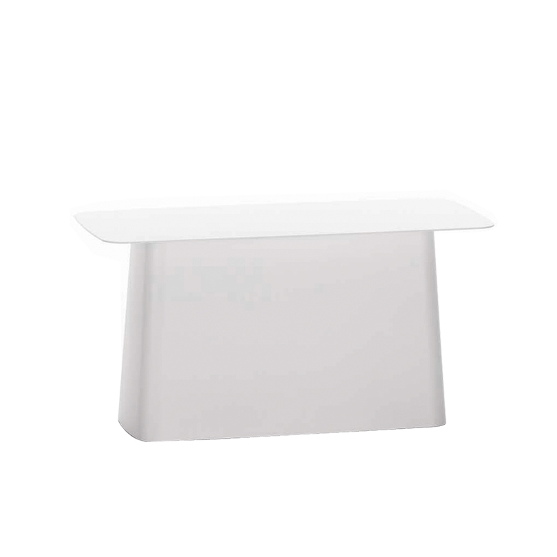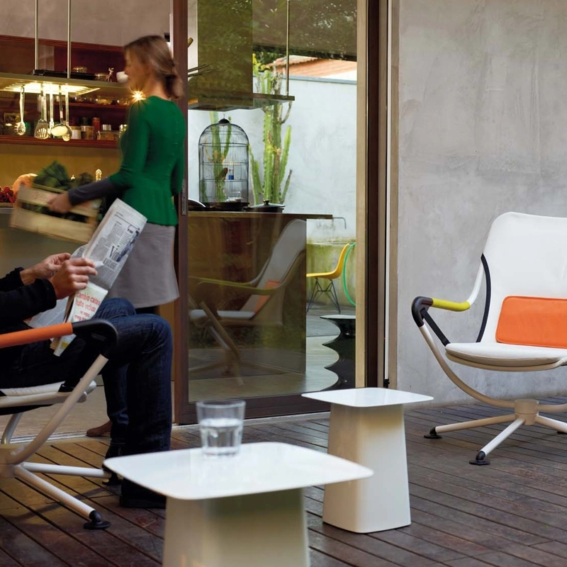 Les Metal Side Tables appartiennent à cette catégorie de meubles qui ne constitue pas la base du mobilier mais qui est toutefois indispensable en le complétant. Pouvant être facilement déplacés et ayant de nombreuses utilisations, ce sont de petits auxiliaires discrets assumant toutes sortes de précieux services. Grâce à leurs proportions équilibrées et le contraste formel séduisant entre les minces plateaux de table et les pieds volumineux en forme de socle, ces tables d'appoint s'intègrent aux environnements les plus divers. Produite par Vitra, Metal Side Table se décline en trois tailles et existe également en version outdoor.