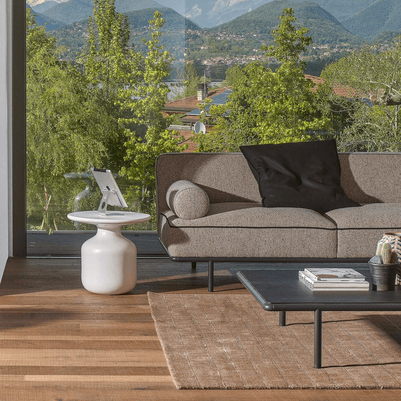 Petite table d'appoint dessinée par le duo Barber Osgerby, Mini Bottle s'inspire des lignes d'une jolie bouteille. Elle est réalisée entièrement en céramique et se décline en noir, blanc ou bleu. Cette petite table est produite dans l'un des plus célèbres laboratoires d'artisanat italien, transformant « la terre en chef d'œuvre ». Mini Bottle, éditée par Cappellini, peut aussi bien être utilisée en bout de canapé qu'en table de chevet dans la chambre.
