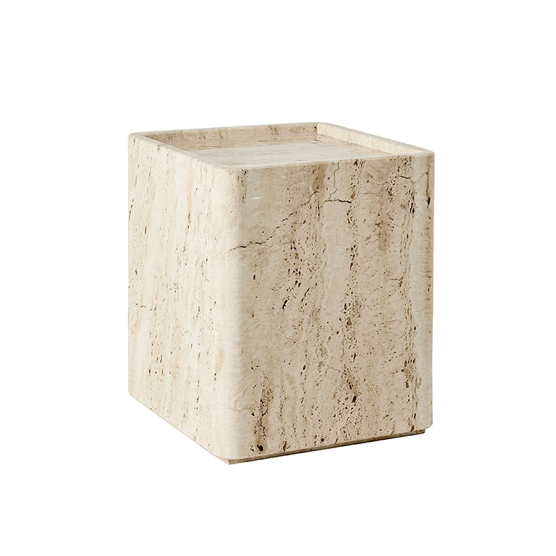 Table d'appoint guéridon PIETRA 33x33 Travertin blanc neutre GUBI