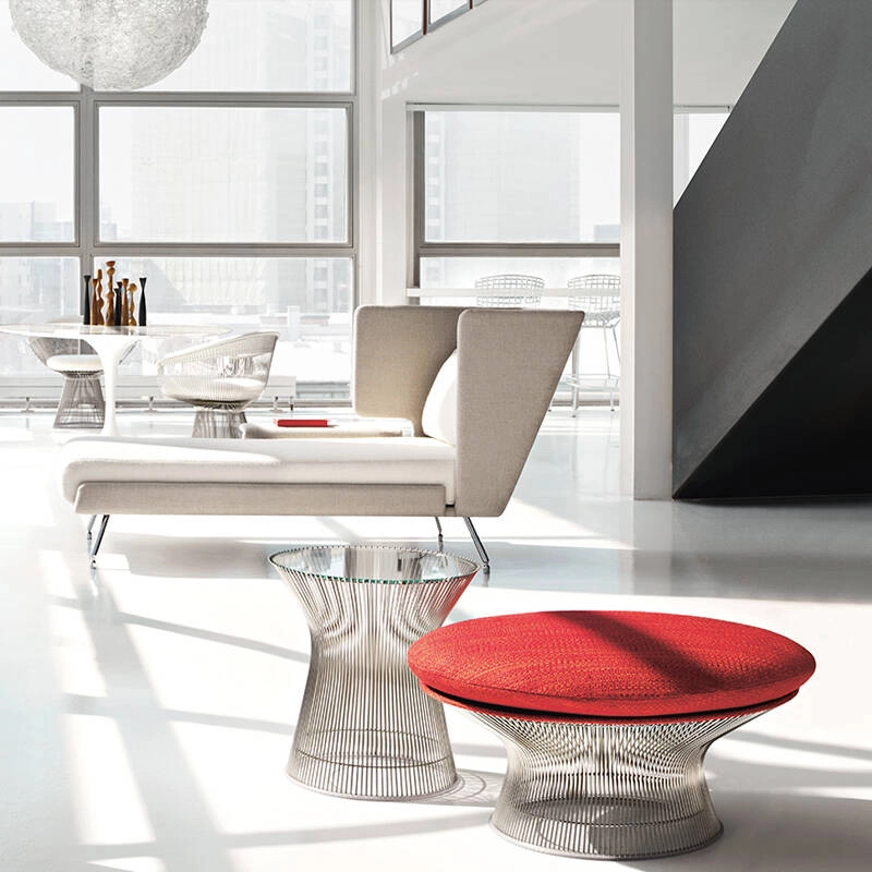 En 1966, Warren Platner dessine une collection de mobilier, devenue iconique, qui se caractérise par une silhouette sculpturale. En transformant de simples tiges d’acier, l’architecte et designer donne naissance à une collection élégante de sièges et de tables avec une base formée de faisceaux de fils d’acier. Editée par Knoll, le guéridon Platner est à la fois léger visuellement grâce à ses matériaux et robuste par la qualité de sa production. Convenant aussi bien aux environnements domestiques que collectifs, cette petite table est parfaite pour accompagner des fauteuils lounge.