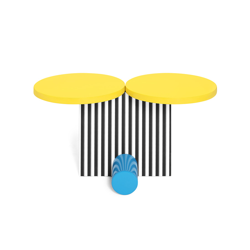 Table d'appoint guéridon POLAR Jaune et bleu MEMPHIS MILANO