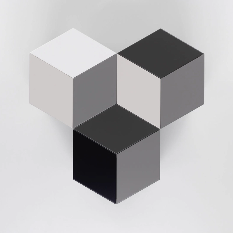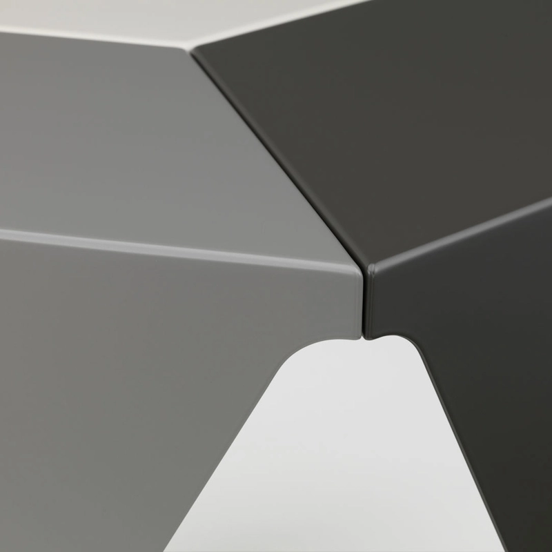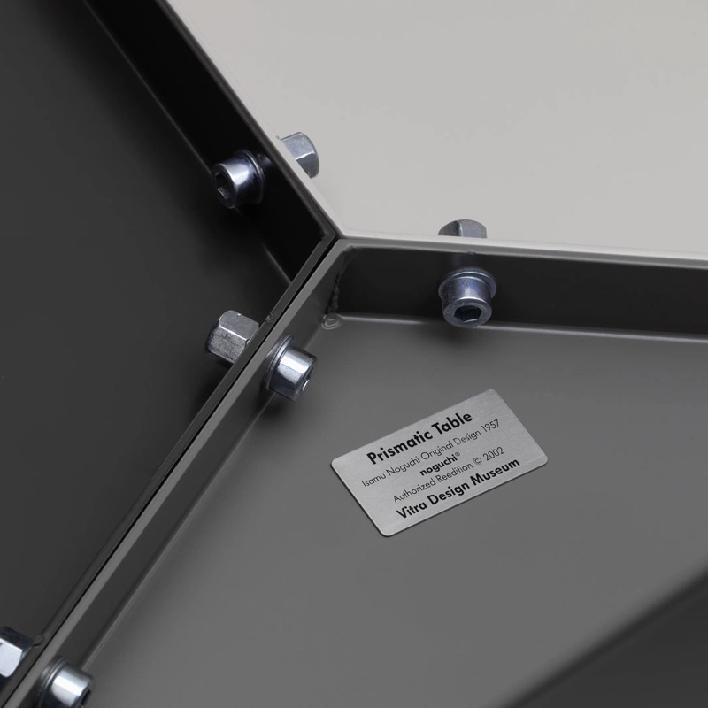 Dessinée en 1957 par Isamu Noguchi et rééditée par Vitra, la table d’appoint Prismatic s’inspire des techniques de pliage de papier japonaises traditionnelles. La forme géométrique de la petite table Prismatic est constituée de trois éléments en tôle d'aluminium pliée, dotée d'une finition époxy haut de gamme. Assemblés, les éléments forment une table à trois pieds avec un plateau hexagonal. Les trois composants de la petite table Prismatic se déclinent en différentes combinaisons de gris, créant des motifs en forme de kaléidoscope lorsque plusieurs tables sont regroupées.