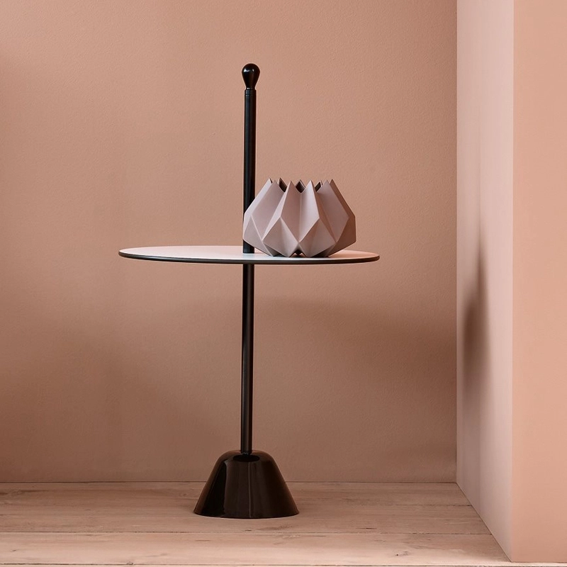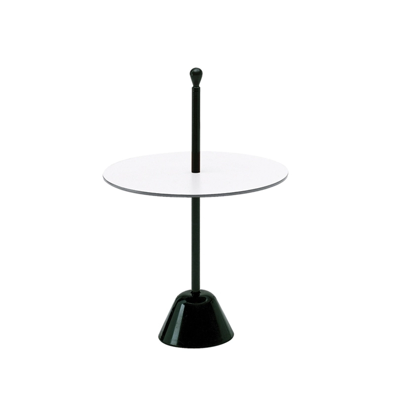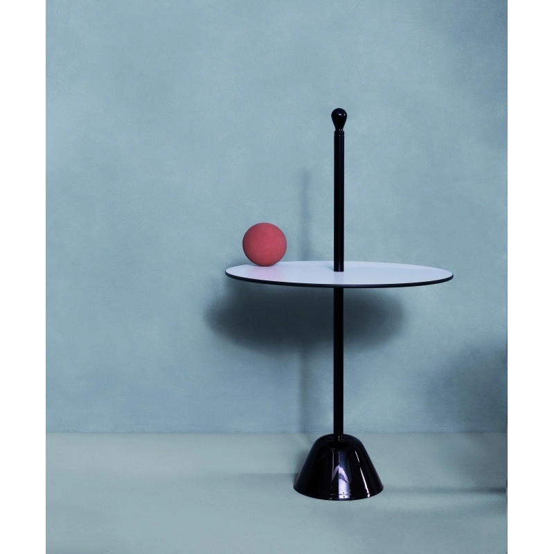 Servomuto est une table d'appoint éditée par Zanotta et fait partie de la collection de compléments d'ameublement créée par Achille Castiglioni dans les années 60. Servomuto est composé d'une base en polypropylène, d'une tige en acier et d'un plateau laminé plastique. Cette petite table est à la fois élégante par ses lignes et très pratique car elle est légère et peut être transportée facilement d'une pièce à l'autre, par la tige qui sert alors de poignée. Elle est disponible en deux dimensions.