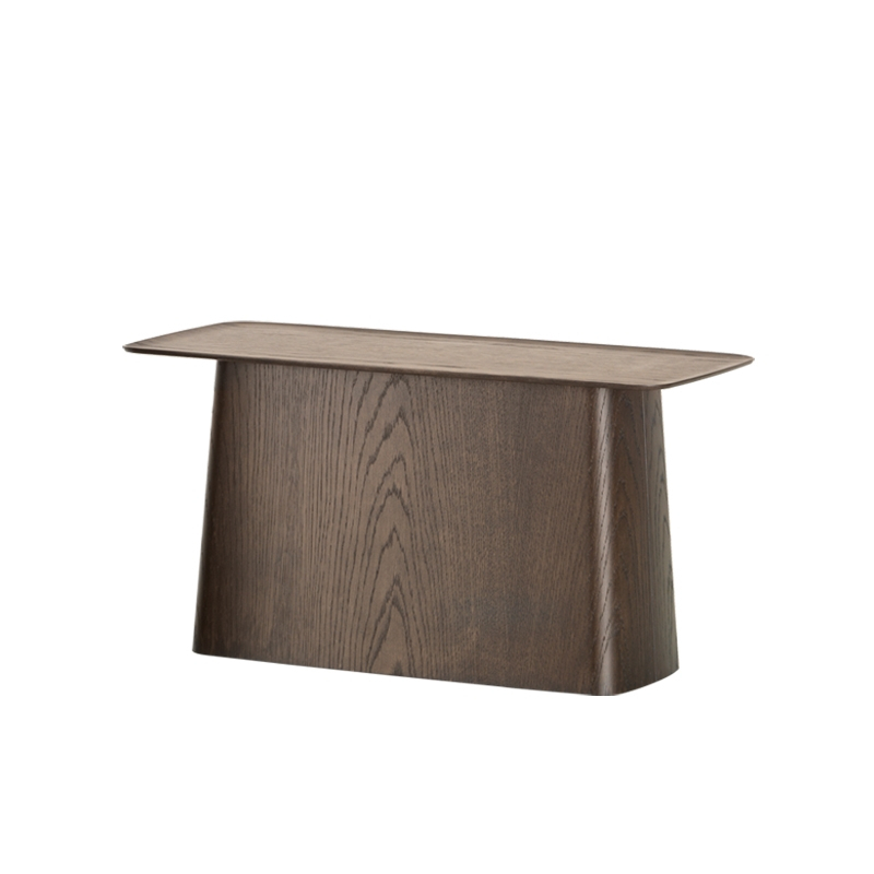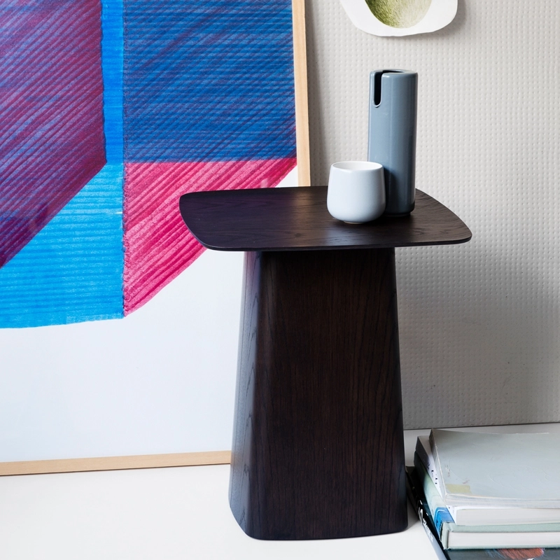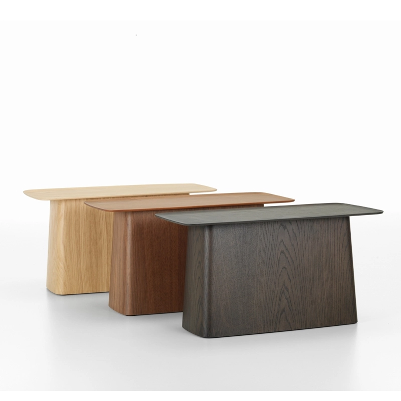 La famille des Side Table s'agrandie avec une nouvelle version en contreplaqué moulé : la Wooden Side Table. Ces petites tables d'appoint élégantes appartiennent à cette catégorie de meubles qui ne constitue pas la base du mobilier mais qui est toutefois indispensable en le complétant. Pouvant être facilement déplacés et ayant de nombreuses utilisations, ce sont de petits auxiliaires discrets assumant toutes sortes de précieux services. Grâce à leurs proportions équilibrées et le contraste formel séduisant entre les minces plateaux de table et les pieds volumineux en forme de socle, ces tables d'appoint s'intègrent aux environnements les plus divers. Produit par Vitra, Wooden Side Table se décline en trois tailles.