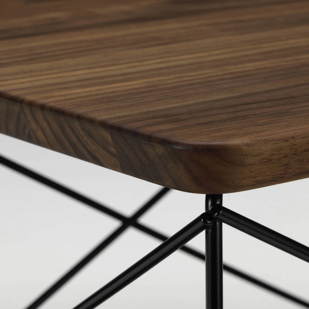 Plateau en noyer américain finition huilée, piètement en fil d‘acier finition époxy basic dark