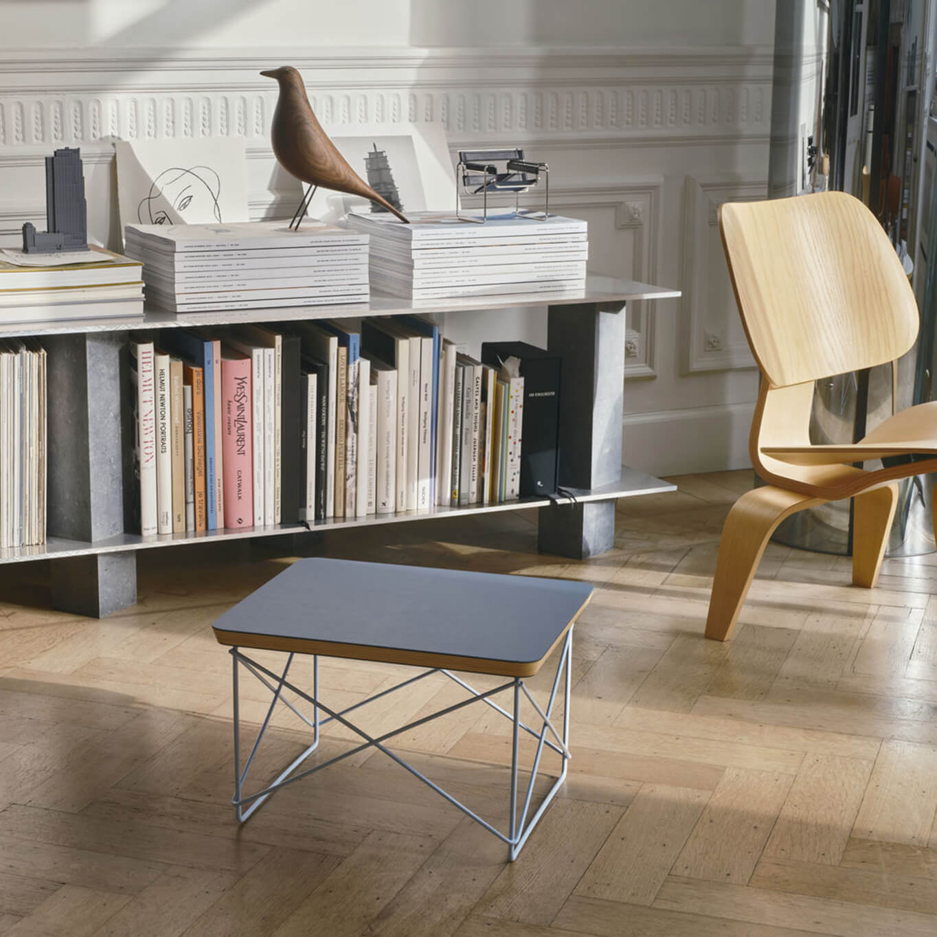 La LTR, Low Table Rod Base, a été conçue en 1950 par le couple de designers Charles et Ray Eames comme petite table basse d'appoint permettant de nombreuses variations et utilisée sous différentes formes dans leur propre maison, la Eames House. Éditées par Vitra, on y trouve aujourd'hui encore un grand nombre de ces tables, disposées séparément ou regroupées, décorées d'objets issus de la collection Eames ou faisant simplement office de tablette près d'un fauteuil et d'un canapé. La table basse LTR fait aujourd'hui partie de la collection du Vitra Design Museum. Le plateau en chêne est disponible avec une base complexe comportant deux tiges en acier galvanisé en U avec des traverses qui apportent la stabilité nécessaire pour assurer leur fonctionnalité. Une table basse Vitra qui s'adapte aisément à votre environnement : en bout de canapé, en table de chevet…