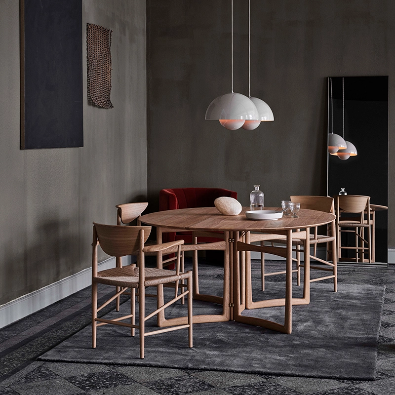 And Tradition a été construite avec une section à charnières de chaque côté qui se rabat à partir du centre fixe. Contrairement à d'autres tables de ce genre, la Drop Leaf peut être pliée par une seule personne. Son design pliable lui assure de s’adapter à tous les intérieurs, un aspect fonctionnel qui s’équilibre avec une attention portée également sur la forme.