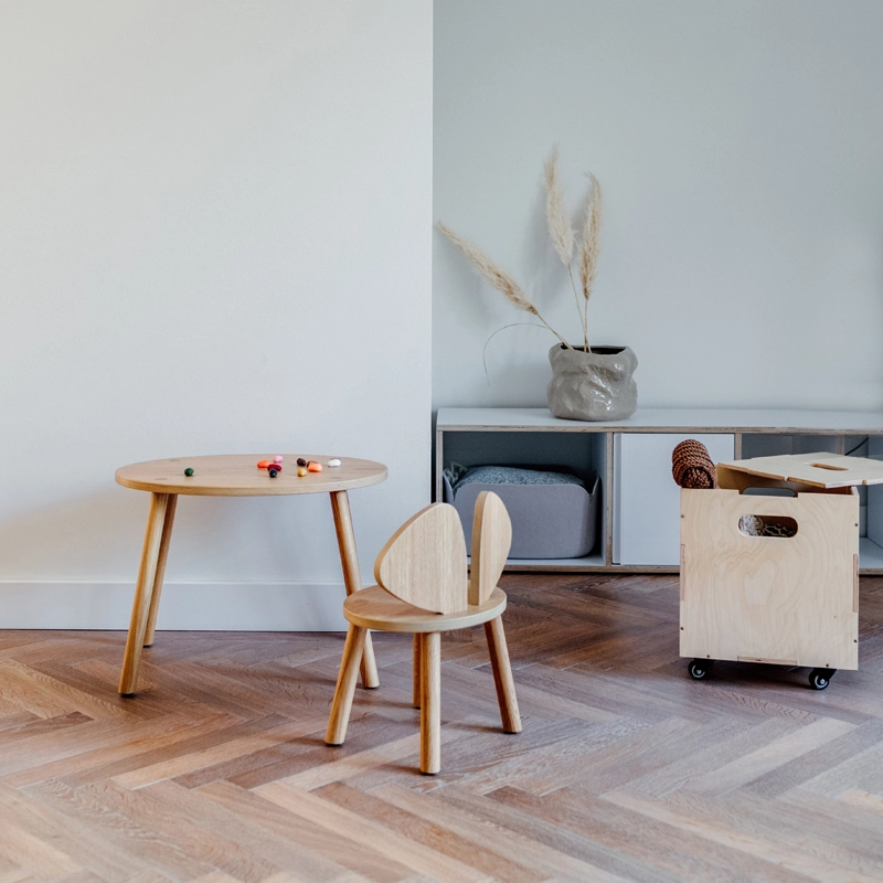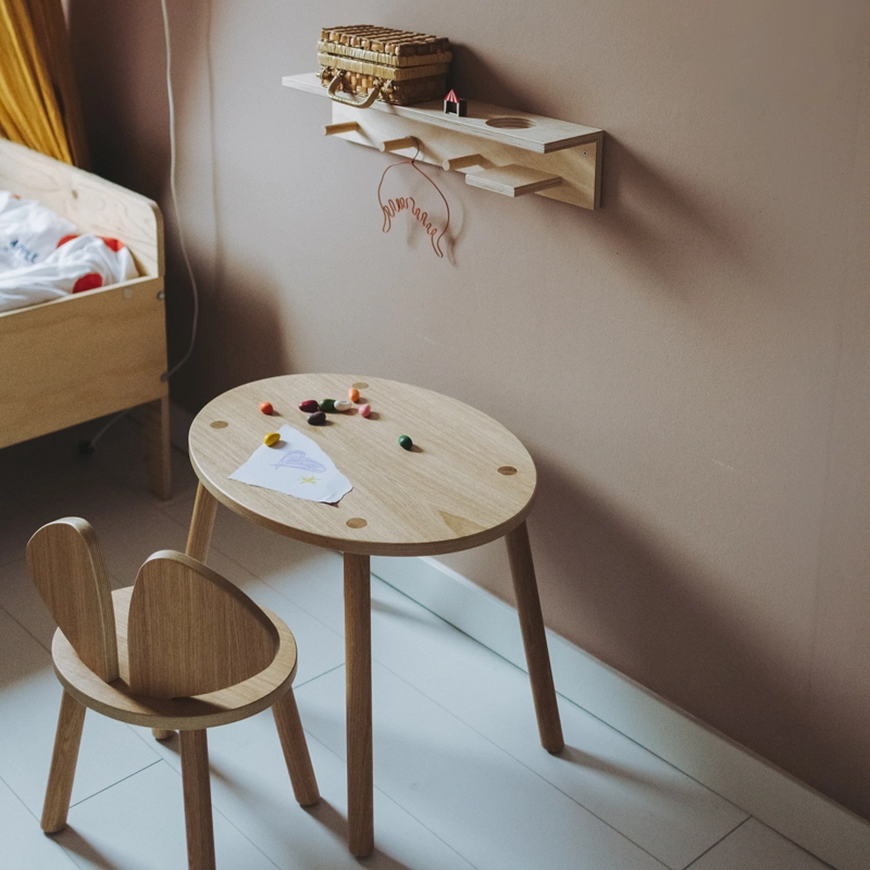 Créée par Nofred, Mouse est une table pour enfants robuste, stable et magnifiquement réalisée. Avec cette table, votre enfant dispose d’un espace à sa hauteur pour jouer, dessiner, créer. Mouse se déplace facilement, pour vous suivre partout dans la maison, permettant aux enfants de 2 à 5 ans d’avoir leur propre table près de vous. Sa réalisation en bois de haute qualité en fait un meuble durable, loin de la culture du jetable. Grâce à un design intemporel, des formes ludiques et de nombreuses couleurs disponibles, cette table primée s’adapte à tous types d’espaces dans la maison et aux goûts de chacun. La table Mouse Nofred s’accorde parfaitement avec la chaise de la même collection.