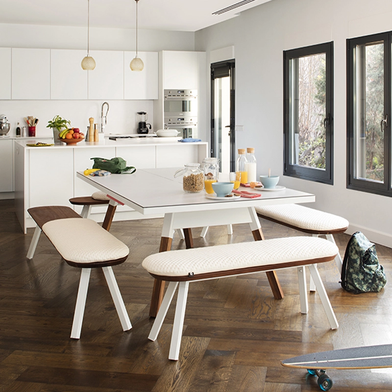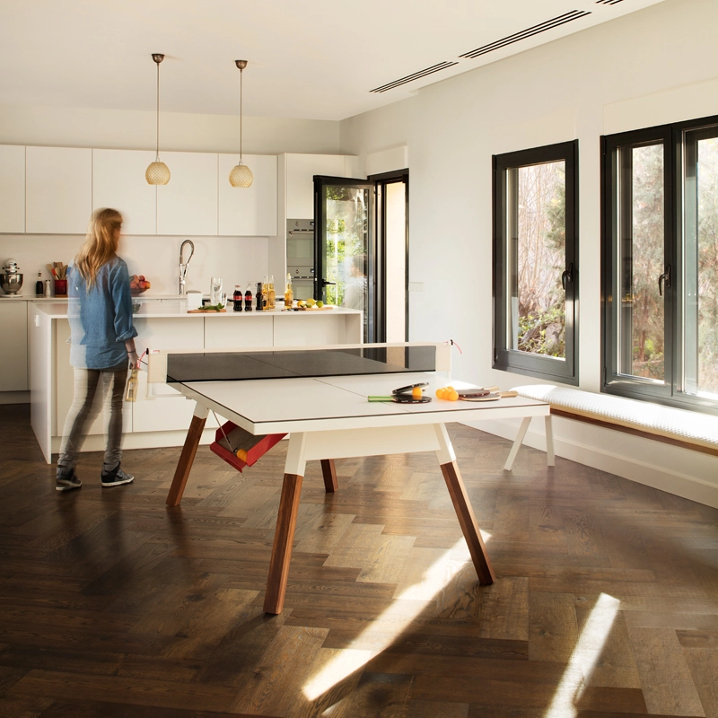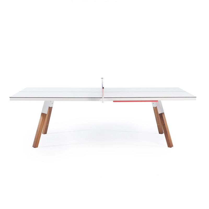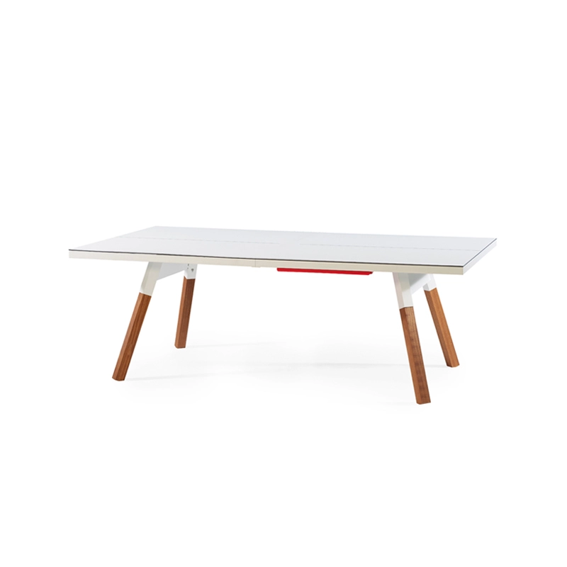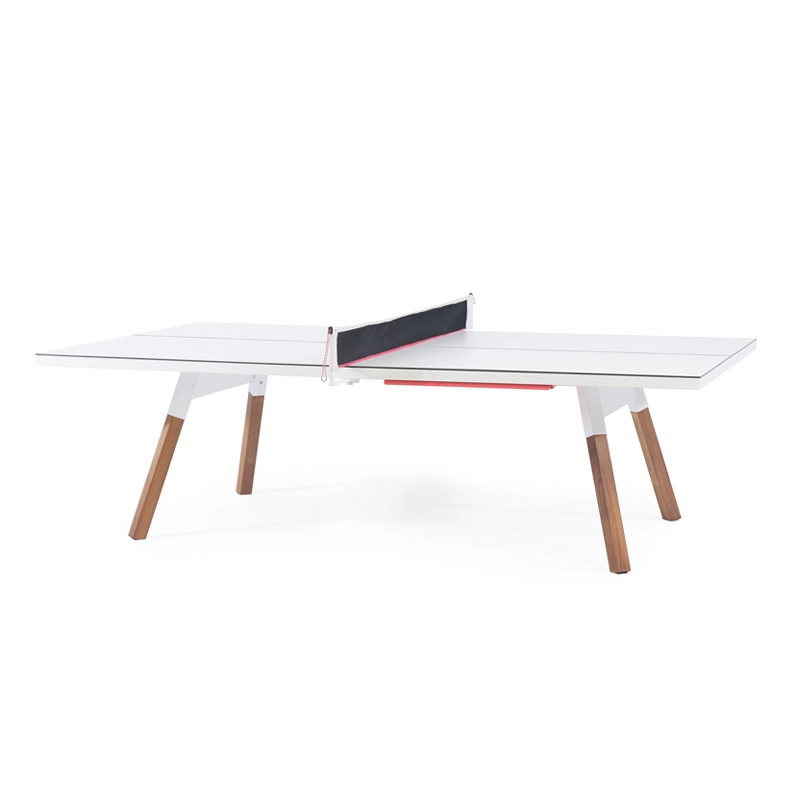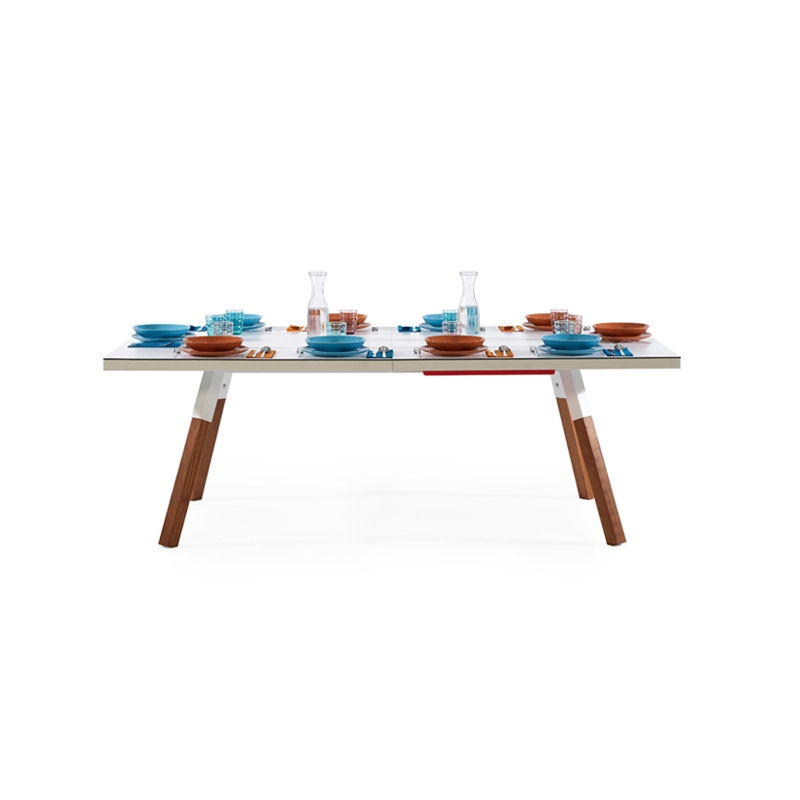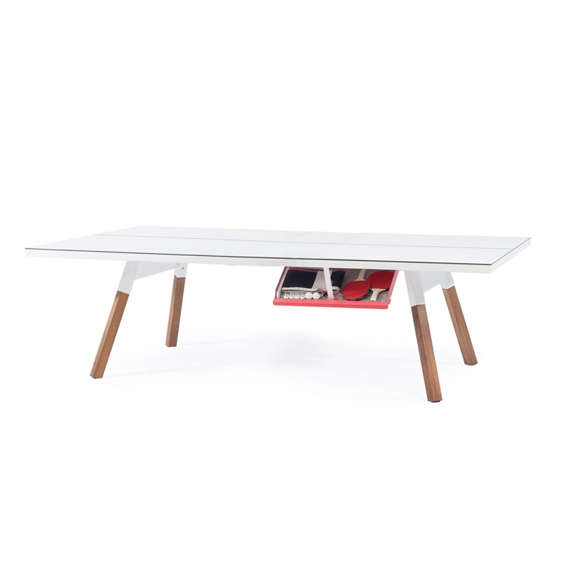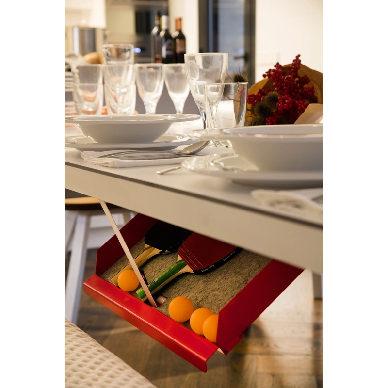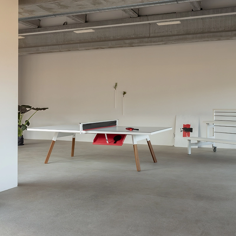 La table convertible You and Me fait partie de la collection ludique de RS Barcelona, une marque de produits vivants et intenses. C’est à la fois une table de ping-pong comme vous n’en avez jamais vue et une table de repas dotée de lignes minimalistes et élégantes qui s’intègre aussi bien à l’intérieur qu’à l’extérieur. Lorsqu’elle n’est pas utilisée pour jouer, le filet, les raquettes et les balles peuvent être rangés dans un tiroir latéral discret. La table You and Me est fabriquée à partir de matériaux de qualité supérieure. Le plateau en HPL blanc ou noir (le même matériau qui est utilisé pour les tables de ping-pong classiques) est idéal pour une utilisation en extérieur. Pour la version en HPL noir, il est conseillé protéger le plateau lorsqu'il n'est pas utilisé, pour éviter la décoloration par le soleil, s'il est utilisé à l'extérieur.