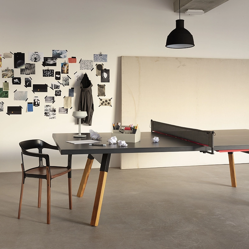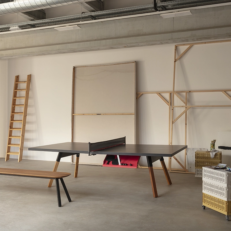 La table convertible You and Me fait partie de la collection ludique de RS Barcelona, une marque de produits vivants et intenses. C’est à la fois une table de ping-pong comme vous n’en avez jamais vue et une table de repas dotée de lignes minimalistes et élégantes qui s’intègre aussi bien à l’intérieur qu’à l’extérieur. Lorsqu’elle n’est pas utilisée pour jouer, le filet, les raquettes et les balles peuvent être rangés dans un tiroir latéral discret. La table You and Me est fabriquée à partir de matériaux de qualité supérieure. Le plateau en HPL blanc ou noir (le même matériau qui est utilisé pour les tables de ping-pong classiques) est idéal pour une utilisation en extérieur. Pour la version en HPL noir, il est conseillé protéger le plateau lorsqu'il n'est pas utilisé, pour éviter la décoloration par le soleil, s'il est utilisé à l'extérieur.