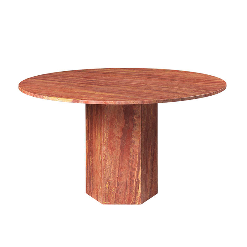 GamFratesi a conçu la table Epic pour Gubi comme un meuble sculptural inspiré par les colonnes grecques et l'architecture romaine et nommé d'après les poèmes épiques de l'Antiquité. Fabriquée en Italie à partir de pierre de travertin, la forme monolithique souligne la matérialité de la pierre, la beauté naturelle de ses veines et la texture vibrante de sa patine unique - dans laquelle un nouveau détail peut être découvert à chaque utilisation. Inspirée par des exemples historiques de constructions en travertin comme le Colisée et la Basilique Saint-Pierre de Rome, et par la renaissance de ce matériau dans les années 1970 en Europe du Sud, la table Epic combine deux formes géométriques simples, le cercle et l'hexagone, avec des références à la colonne grecque classique. Les options de pierre en Blanc Neutre, Gris Vibrant ou Rouge Brûlé coloré créent chacune un point focal d'intensité différente, apportant de la personnalité dans une maison et du naturel aux espaces publics.
