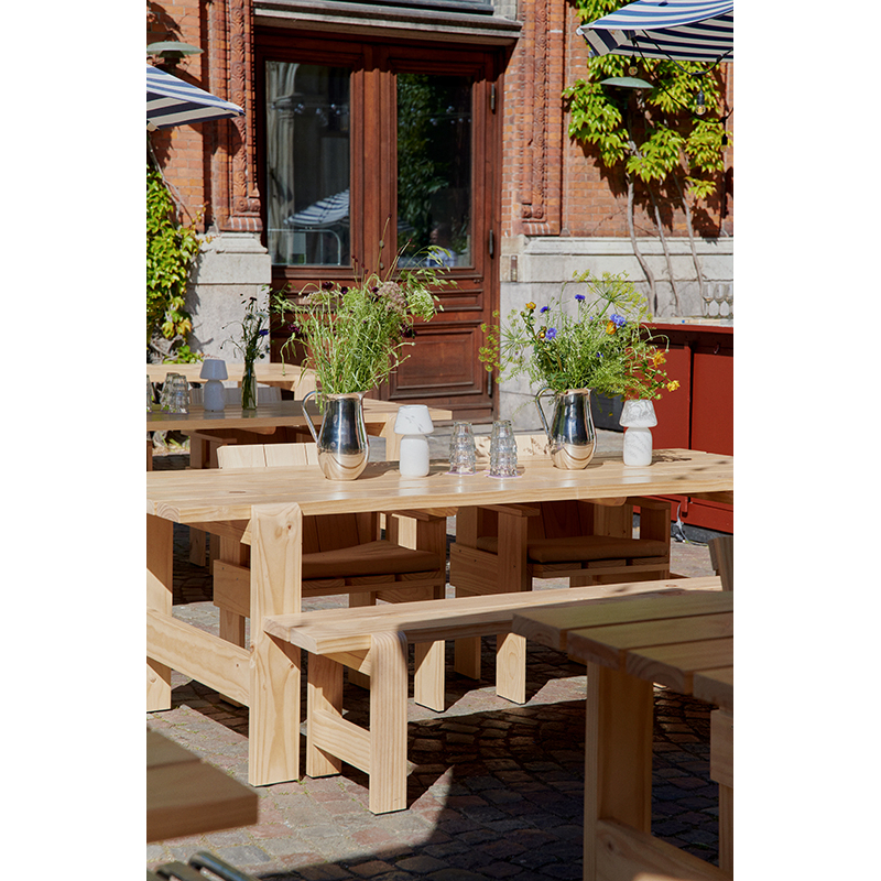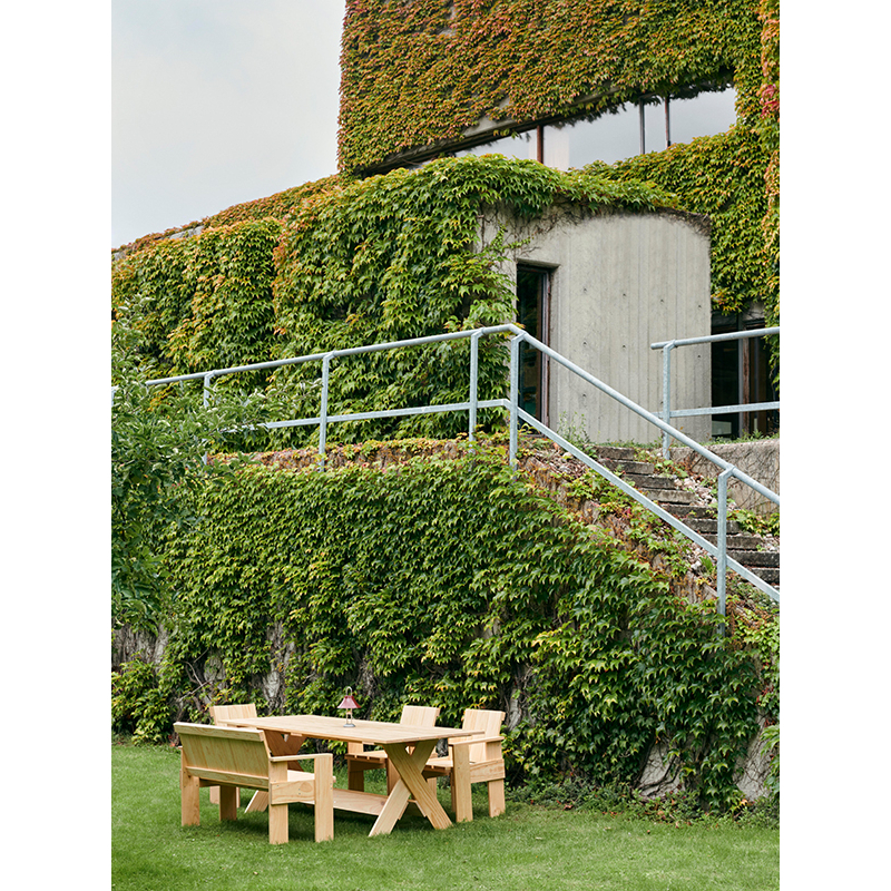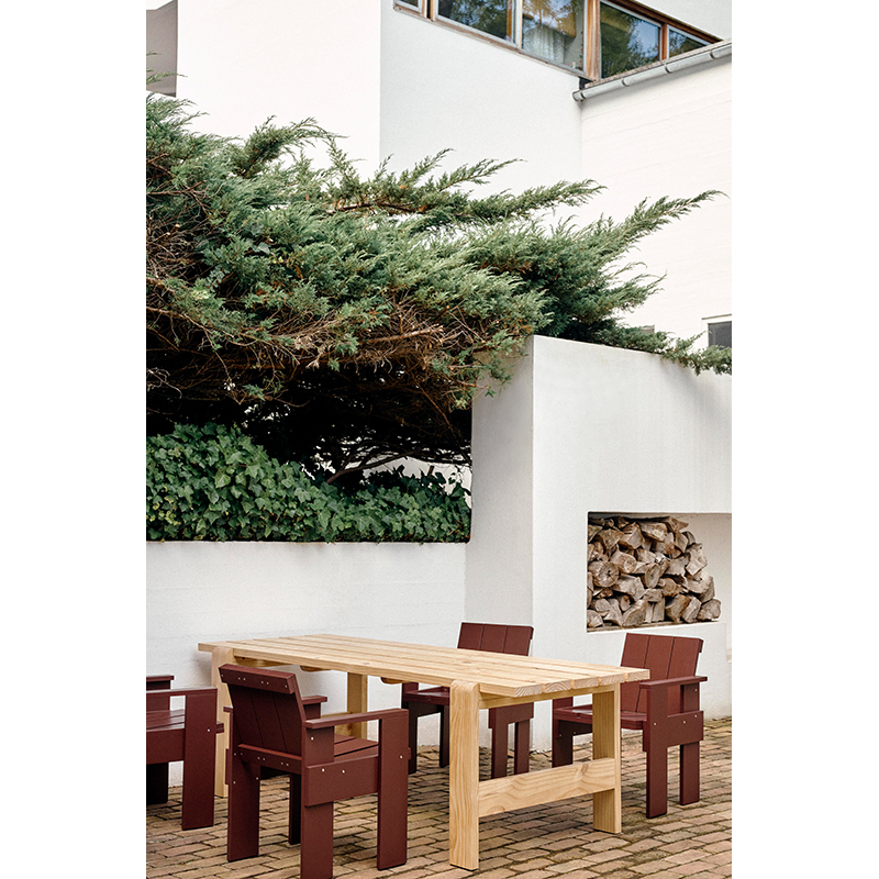 Conçue par Gerrit Rietveld en 1934, la collection Crate a été relancée dans le cadre d'une collaboration entre Rietveld Originals et Hay. Cette série de meubles épurés avait été dessinée à l'origine pour utiliser des surplus de caisses de transport en bois. Rééditée dans le respect du design original, la table Crate est dotée des mêmes proportions parfaitement équilibrées et de la même construction évidente pour minimiser les coûts de production et optimiser le processus d'assemblage. La simplicité et la conception spatiale de la table Crate reflètent le style architectural du designer. Réalisé en pin massif et traité avec une laque d'extérieur à base d’eau, la table Crate est idéale pour les espaces extérieurs tels que la terrasse ou le jardin.