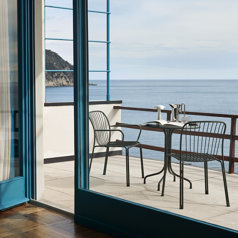 La collection Thorvald présentée par And Tradition célèbre la vie en plein air avec des silhouettes sculptées et un jeu d'ombre et de lumière. C’est une version moderne des lignes lyriques de l’artiste néoclassique le plus estimé du Danemark, Bertel Thorvaldsen, et des motifs fascinants de son musée éponyme. La structure de Thorvald juxtapose un piètement filiforme et un plateau en acier pour une silhouette équilibrée permettant un placement facile dans la nature et en milieu urbain.