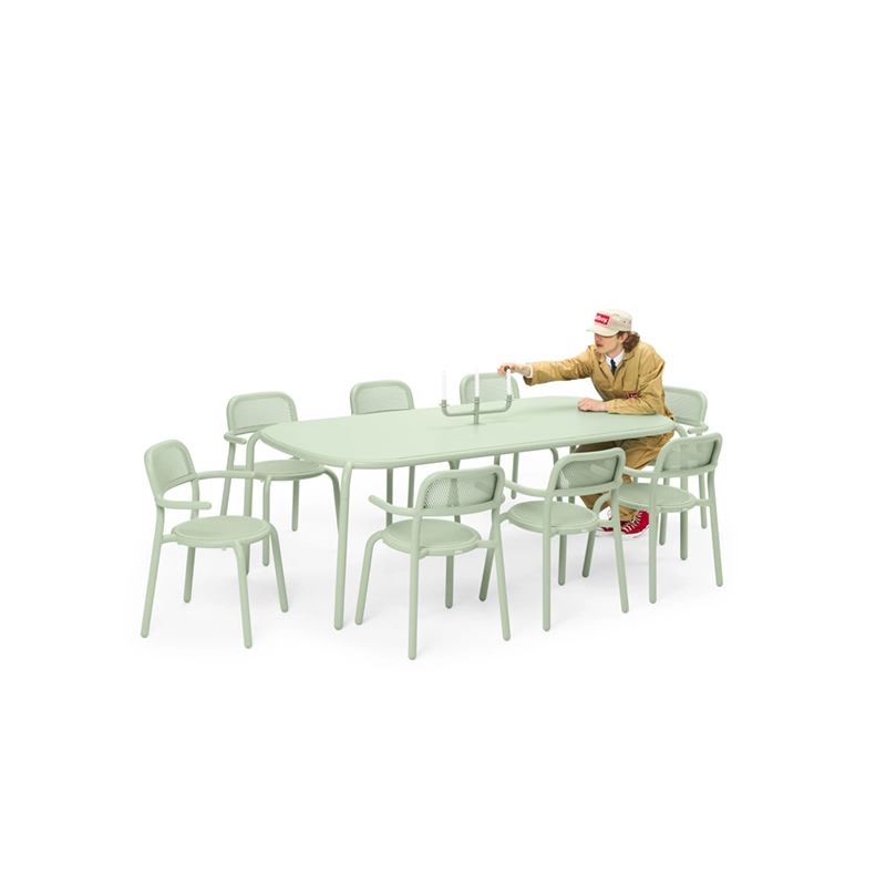 La table Toní Tablo de Fatboy est parfaite pour les dîners à l'extérieur en famille ou entre amis. D'une longueur de 2,2 mètres, elle peut accueillir jusqu'à 8 personnes. Conçue en aluminium, elle est agréable et légère, et peut être déplacée facilement. Le trou au milieu sert de porte-parasol le jour et peut être utilisé pour placer une bougie le soir. La table Toní Tablo est facile à entretenir. Traitée avec un revêtement extérieur de la plus haute qualité, la table est inoxydable, résistante aux intempéries et ne décolore pas.
