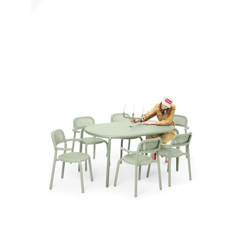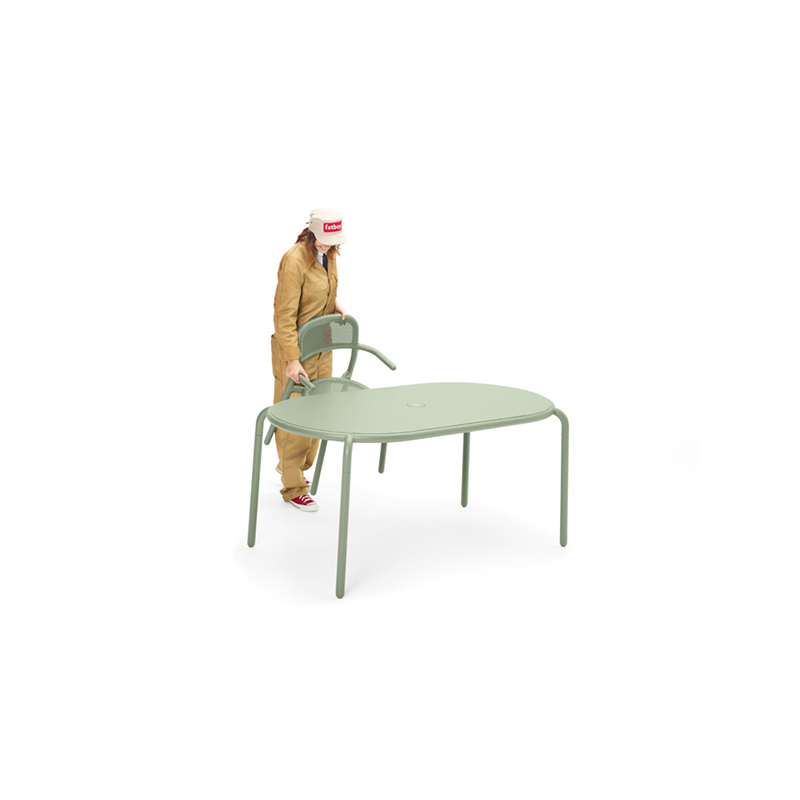 Toní Tavolo de Fatboy peut accueillir jusqu'à six personnes pour dîner, prendre quelques verres. Le plateau généreux et les coins arrondis et conviviaux de cette table à manger de jardin contemporaine invitent tout le monde à prendre une chaise et à se joindre à vous. Combinez-la avec quelques chaises Toní. Ou avec Bankski, donc la longueur est exactement la même que celle de la table. La table de jardin Toní Tavolo est conçue pour durer des années et des années. Elle est conçue en aluminium léger et possède un revêtement de protection de haute qualité. Même si vous laissez cette table à manger à l'extérieur toute l'année pour endurer tout ce que la nature lui fera subir, elle résistera à la corrosion et ne décolorera pas. Pieds réglables et emplacement pour parasol ou chandelier au centre.