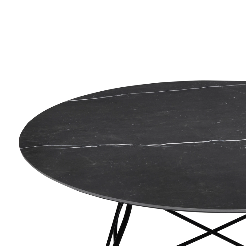 La table Glossy a été conçue par les designers Antonio Citterio et Oliver Löw pour la marque Kartell. Glossy est dotée d'une structure légère et très architecturale en acier. Le piètement filaire se caractérise par l’utilisation de l’élément en croix qui relie les pieds sur chacun des quatre côtés et soutient Avec sa finition qui imite parfaitement le marbre, le plateau en grès est particulièrement robuste et facile d'entretien. Très conviviale, la table ronde Glossy s'intègre facilement dans tous les styles d'intérieurs.