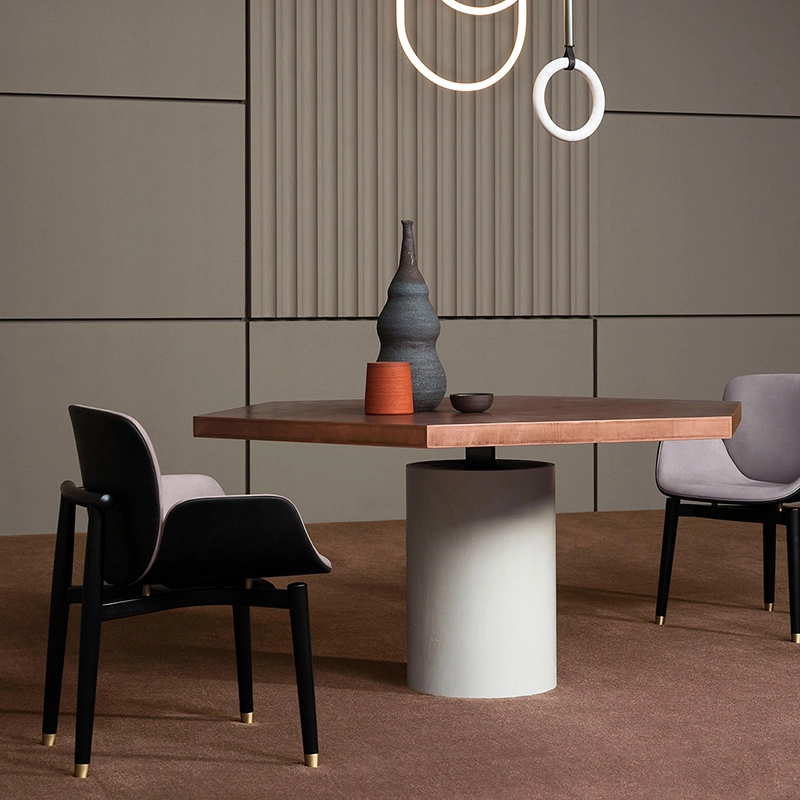 Dessinée par Studiopepe pour Baxter Made in Italy, Jupiter est une table composée d'un plateau comparable en nid d'abeille recouvert d'alpacca, en cuivre antique ou laiton antique, avec verni mat. Le plateau est fixé sur un pied cylindrique recouvert de ciment Terra Cruda. La table Jupiter de Baxter Made in Italy surprend par sa personnalité et son originalité et s'impose dans les intérieurs contemporains.