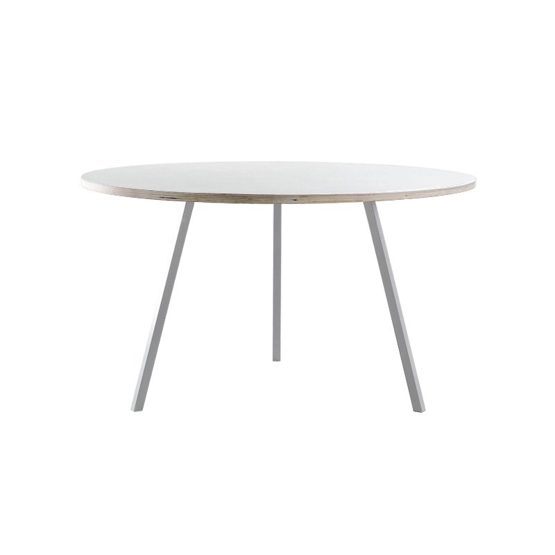Loop Stand Table est une collection de tables dessinée par Leif Joergensen pour l'éditeur Hay. Le designer imagine une gamme de mobilier caractérisée par sa simplicité et son accessibilité. Comme pour le portemanteau Loop Stand Hall, la table Loop Stand reprend la forme simplifiée du chevalet industriel, constituée d'un plateau et de deux tréteaux tripodes. A l'origine, cette collection avait dessinée pour la boutique Storm à Copenhague, dont Leif Joergensen à conçu l'intérieur. Cette table desgin peut aussi bien convenir à une salle à manger qu'à un bureau. Loop Stand Table est disponible dans un format rectangulaire ou rond.