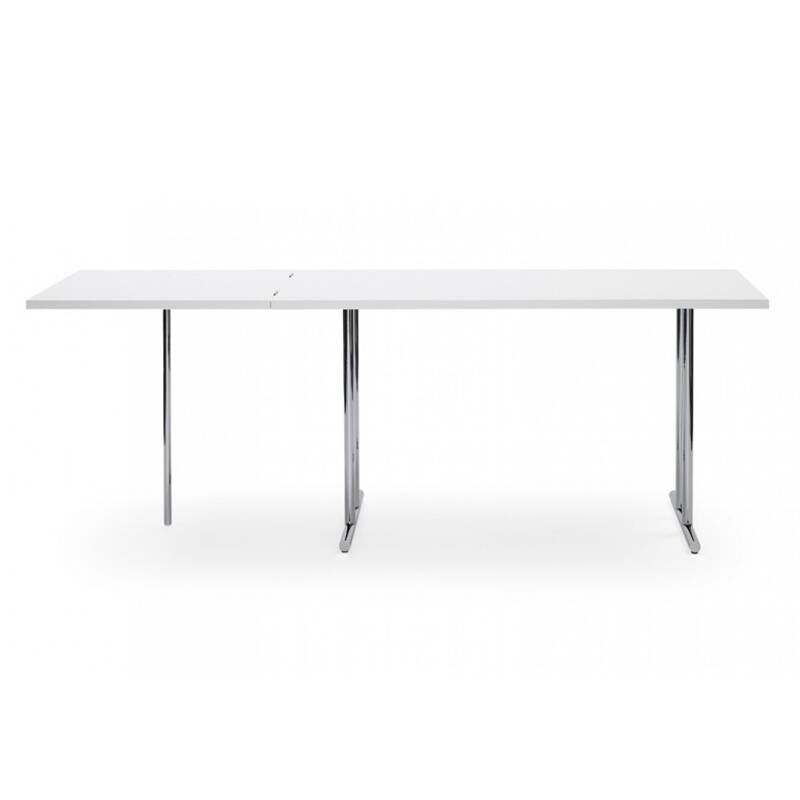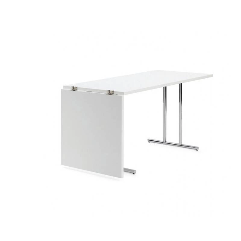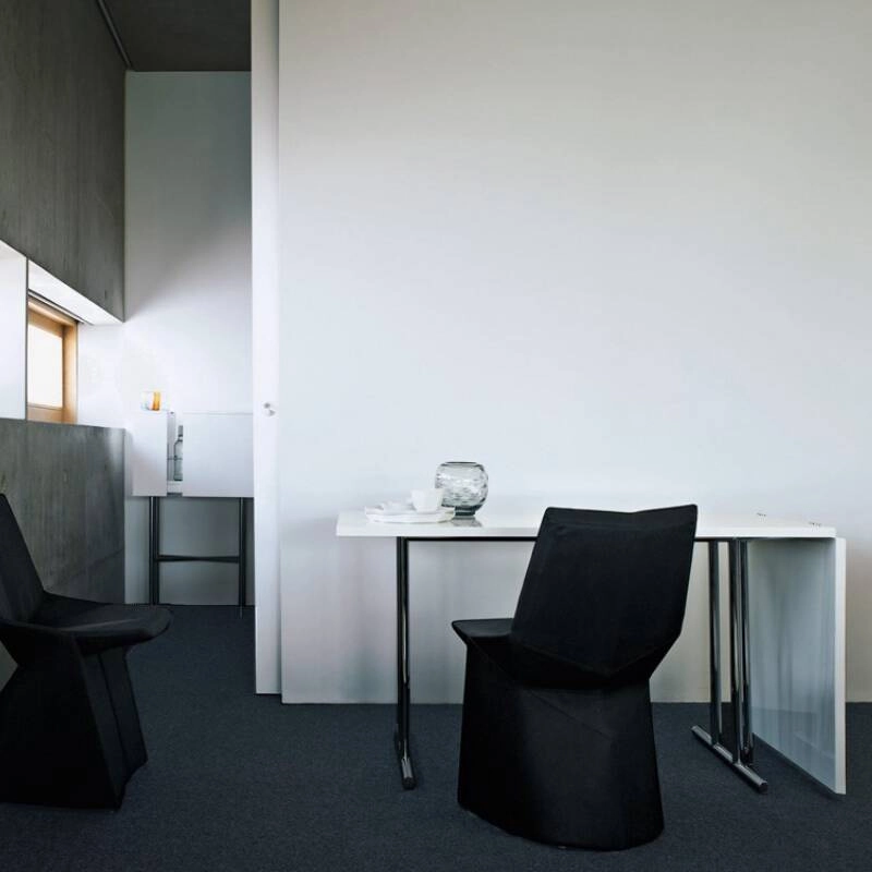 Comme la plupart des tables réalisées par Eileen Gray, Lou Perou peut se transformer afin d'en faire un produit pratique pour un usage quotidien. Comme à chaque fois la designer trouve une solution inattendue : avec Lou Perou, la partie pliante de la table est soutenue par un seul pied, rompant ainsi avec la symétrie parfaite de la structure. Eileen Gray nomme cette pièce d'après sa dernière maison, Lou Perou, qu'elle construit à l'âge de 76 ans au-dessus de St Tropez. Editée par Classicon, elle possède un plateau pliant en MDF laqué est fixé sur un piètement en acier chromé pour en faire une table de salle à manger innovante et pratique.