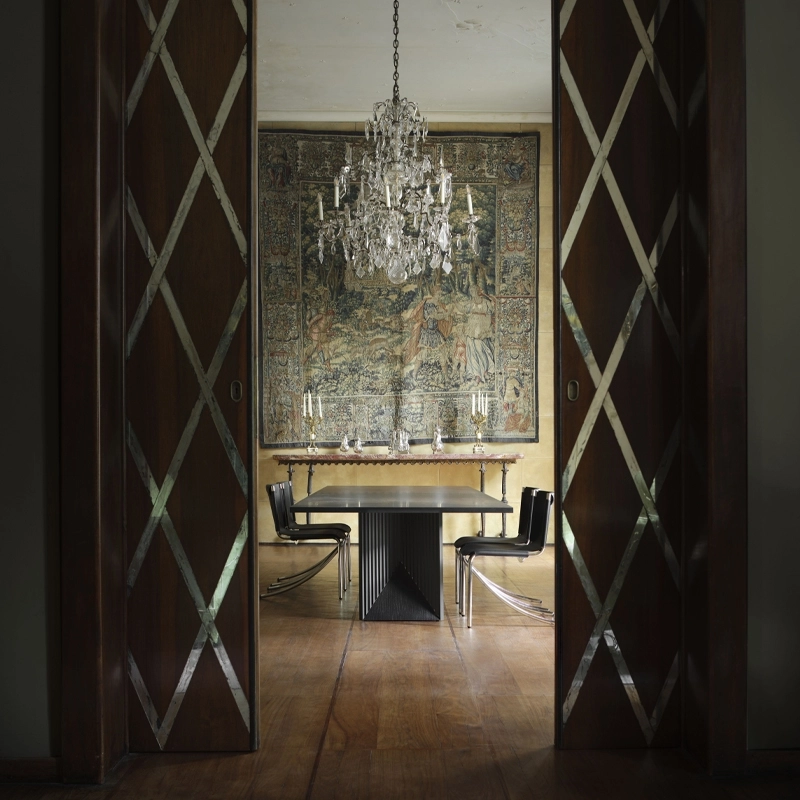 Vers la fin des années quatre-vingt-dix, la table Maestro voit le jour, imaginée par l’architecte Gianfranco Frattini. Son design unique mêle vision projectuelle et toute l'ingéniosité du savoir-faire italien en ébénisterie.