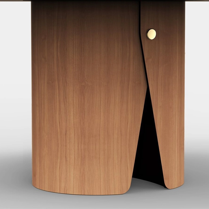 Manto conçue par Pietro Russo pour Gallotti & Radice est une table avec plateau en marqueterie à chevrons, avec des bords en biseau noir. Son admirable plateau repose sur une base incurvée, avec un subtil bouton en laiton satiné.