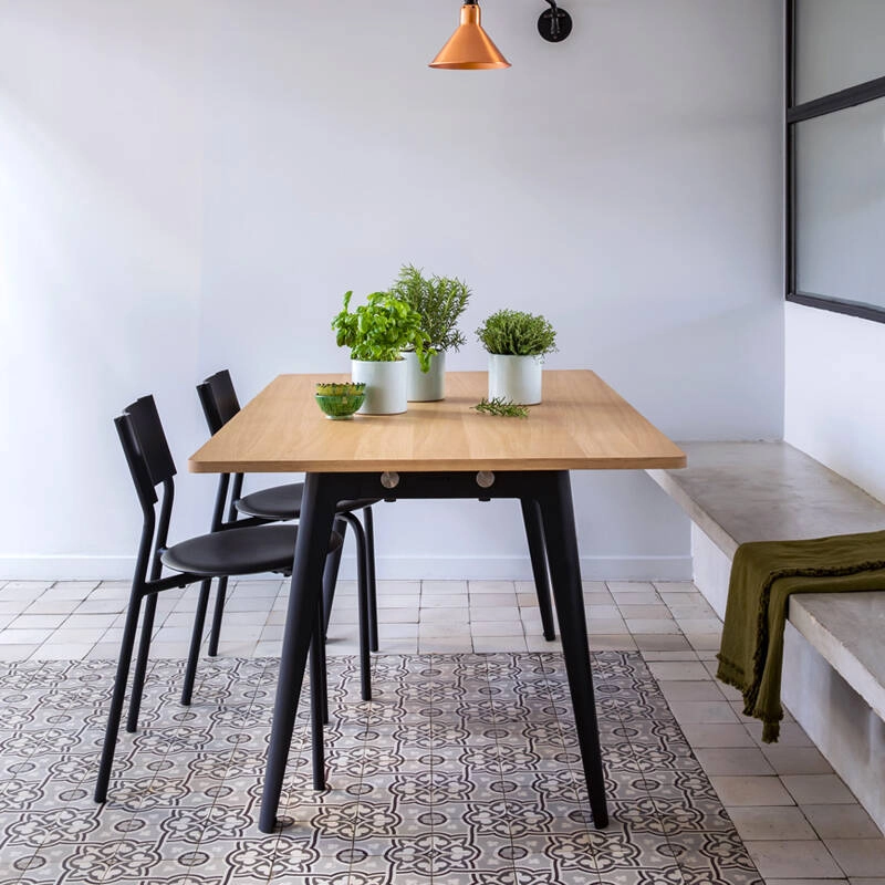 La table NEW MODERN de TIPTOE est constituée d'un piétement en acier et d'un plateau en bois éco-certifié. Créée par TIPTOE, la collection New Modern est le fruit d’un an de travail et d’itérations pour créer un système de table modulable aussi efficace sur les plans fonctionnels et industriels qu’en matière de durabilité. Comme chaque objet TIPTOE, le système NEW MODERN a été conçu en veillant à maîtriser notre impact tout au long du cycle de vie du produit. Epurée, robuste et moderne, la table New Modern s'intègre aussi bien dans les espaces domestiques que dans les environnements professionnels. L 160 cm : 6 à 8 places - L 190 : 8 à 10 places - L 220 : 10 à 12 places