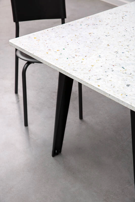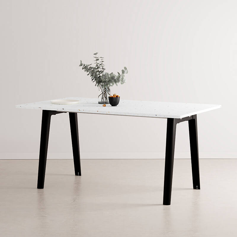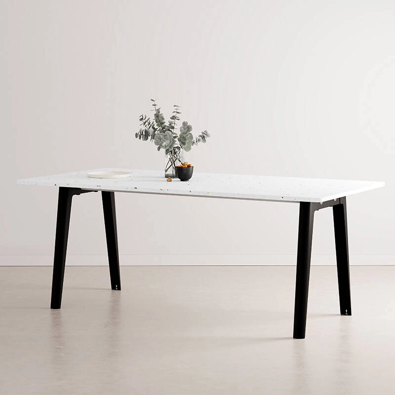 La table NEW MODERN de TIPTOE est constituée d'un piétement en acier et d'un plateau en plastique recyclé. Créée par TIPTOE, la collection New Modern est le fruit d’un an de travail et d’itérations pour créer un système de table modulable aussi efficace sur les plans fonctionnels et industriels qu’en matière de durabilité. Comme chaque objet TIPTOE, le système NEW MODERN a été conçu en veillant à maîtriser notre impact tout au long du cycle de vie du produit. La plateau en plateau est fabriqué à partir des déchets de centaines de pots de yaourt ! Epurée, robuste et moderne, la table New Modern s'intègre aussi bien dans les espaces domestiques que dans les environnements professionnels. L 160 cm : 6 à 8 places - L 190 : 8 à 10 places