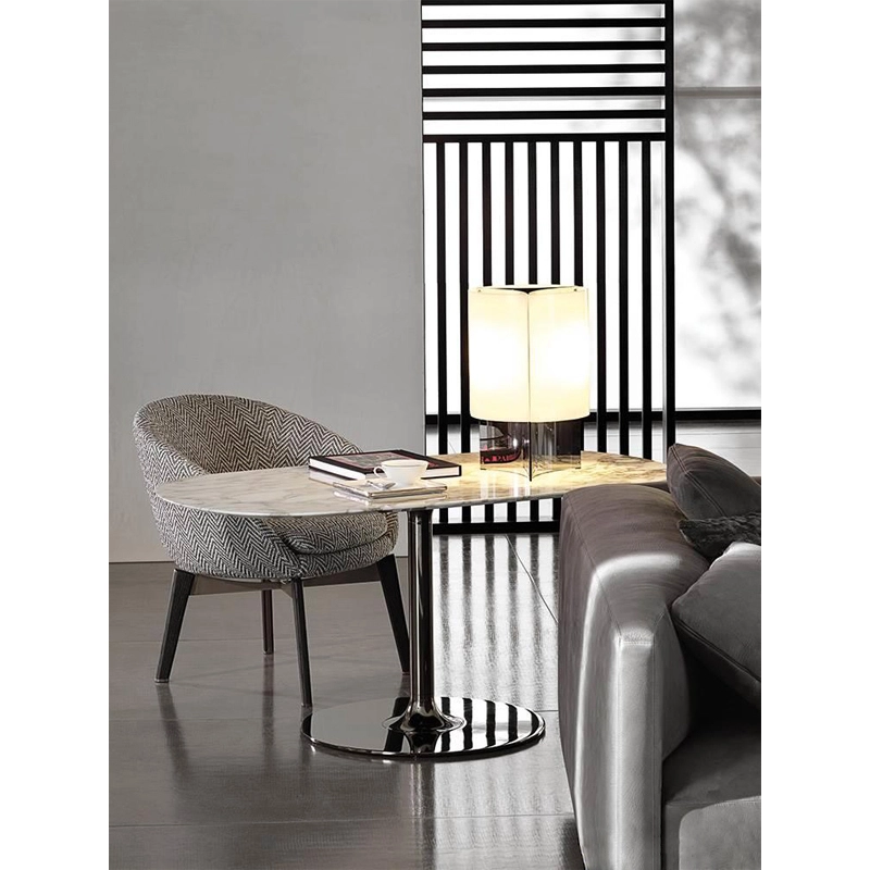 Le principe inspirant de la structure des tables Oliver repose sur un effet visuel fascinant : celui d'une tige métallique qui se fond dans un flux diffus. Dans un geste cher au Mouvement Moderne, le tube qui forme la base de la table Oliver évolue dans une forme circulaire offrant une surface brillante continue. Oliver possède un précieux plateau en marbre Calacatta ou pierre grise. Avec sa hauteur de 66 cm, elle s'associe parfaitement à des fauteuils ou banquettes lounge, pouvant servir de table de repas dans un restaurant ou de petit bureau d'appoint dans un intérieur. Dessinée par Rodolfo Dordoni, Oliver est une table qui interprète pleinement l'essence de la contemporanéité classique de Minotti.