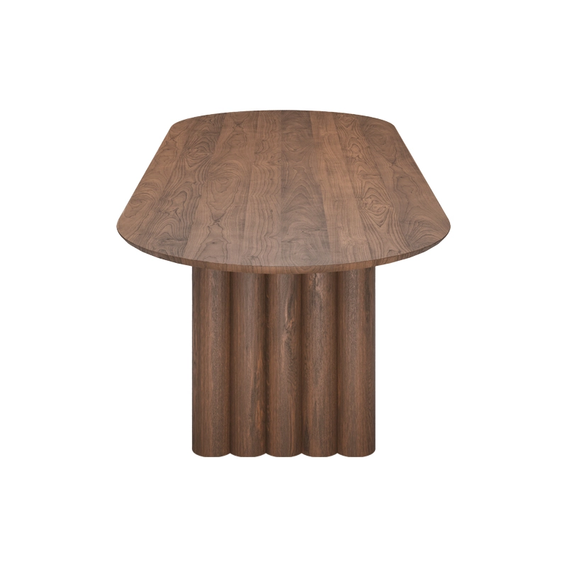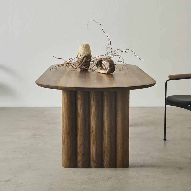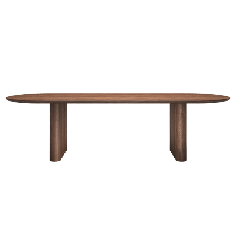 Tout au long du processus de conception, l'accent a été mis sur la création d'une ligne fine entre les pieds imposants et les formes courbes parfaitement équilibrées qui définissent le plateau en bois massif. La table Plush porte bien son nom avec ses formes douces qui, avec le bois robuste et l'élégant plateau, forment une unité impressionnante.