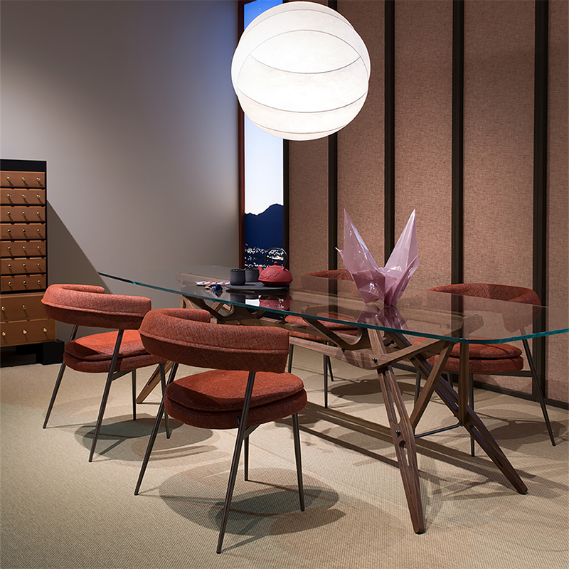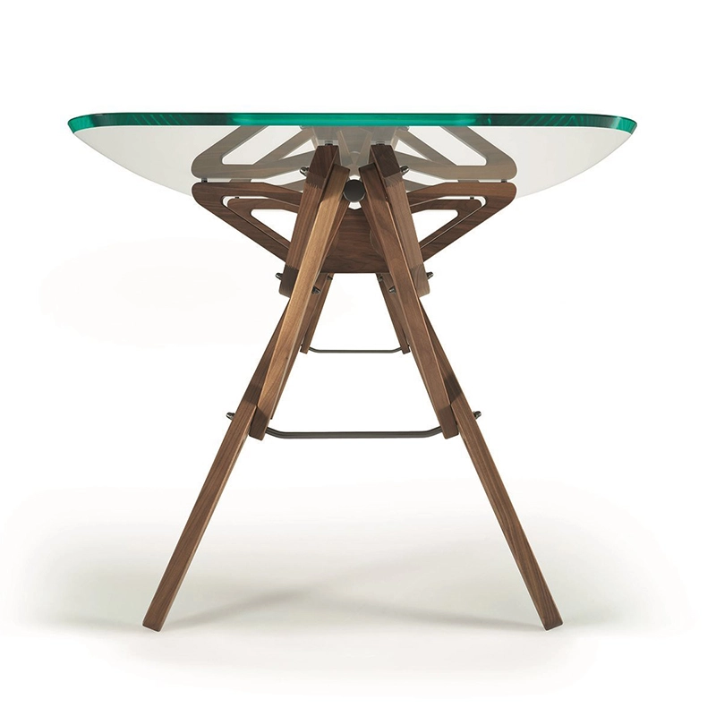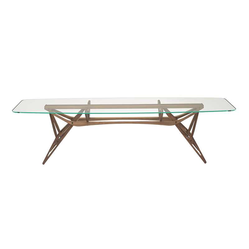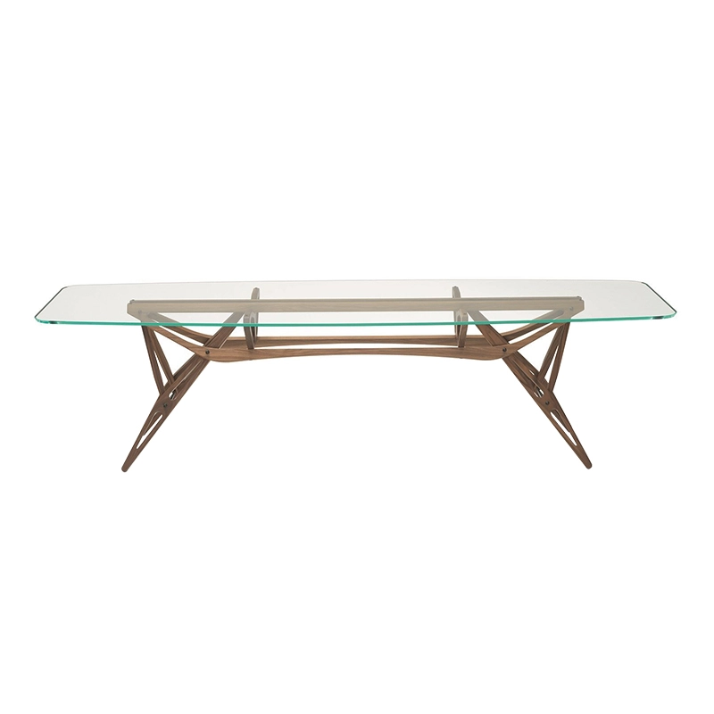 Conçue par Carlo Mollino, Reale est une table qui se distingue par sa structure en bois organique, solide et légère, conçue comme le détail d'une aile d'avion. Zanotta propose cette table avec un grand plateau en verre extra-clair avec bord biseautés. Cette icône du design italien joue sur le contraste des matériaux et des formes, pour une table de salle à manger qui s'intègre dans tous les intérieurs.