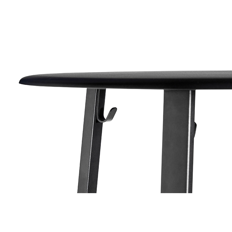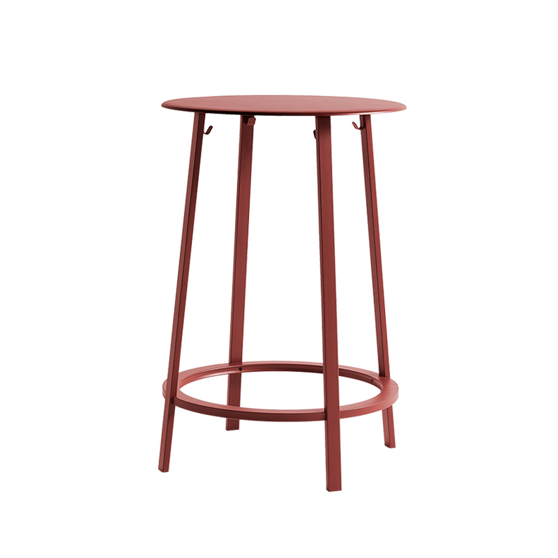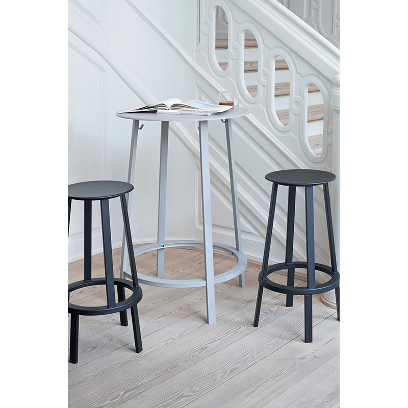 Dessinée par Leon Ransmeier pour la marque Hay, la table haute Revolver est réalisée en acier finition époxy et présente les mêmes arêtes, courbes et le même sens de la symétrie que le tabouret de la même collection. Sur le plan fonctionnel la table Revolver dispose d’un repose-pied circulaire qui sert de support, tandis que des crochets sur les pieds de la table permettent d'accrocher les manteaux et les sacs en toute sécurité en dessous. Disponible en plusieurs couleurs, la table haute Revolver convient à une large gamme de cafés, restaurants et autres lieux publics.