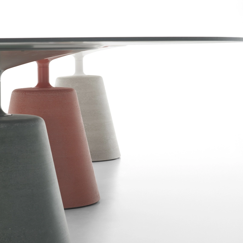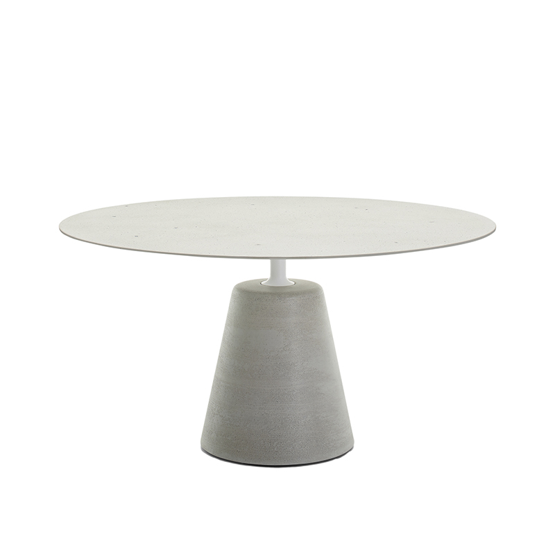La table iconique Rock de Jean Marie Massaud, avec sa silhouette fluide et élégante, révèle complètement la nature de ce qu'elle représente: «une table ronde» qui semble flotter au-dessus d'un socle solide et inorganique. Un mélange de matériaux naturels et industriels qui sont mélangés pour créer un nouveau produit avec un design lisse, suivant la même philosophie de la collection Flow.  Un objet solide raffiné, léger et stable, radical autant que sensuel. Le style unique de Rock Table, basé sur des formes simplifiées, est combiné à des systèmes de production innovants, ce qui rend les tables MDF Italia adaptées non seulement aux salons modernes, mais également aux conceptions de salon et aux contextes de travail, tels que les bureaux, les salles de réunion, les salles de conférence avec une identité forte.