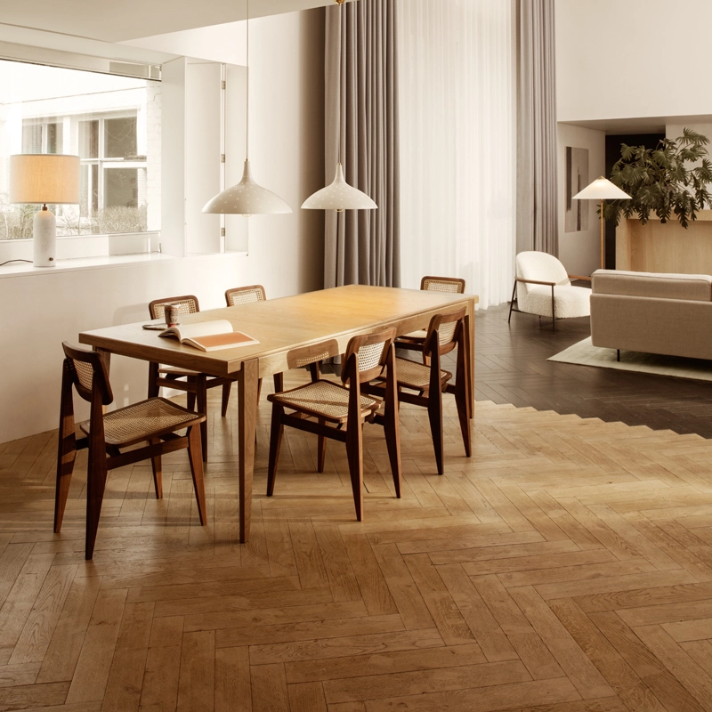 Gubi possède des lignes épurées et simples, des pieds fuselés élégants, la solidité du cadre et un savoir-faire précis lui confèrent une qualité intemporelle et une fonctionnalité sans compromis.