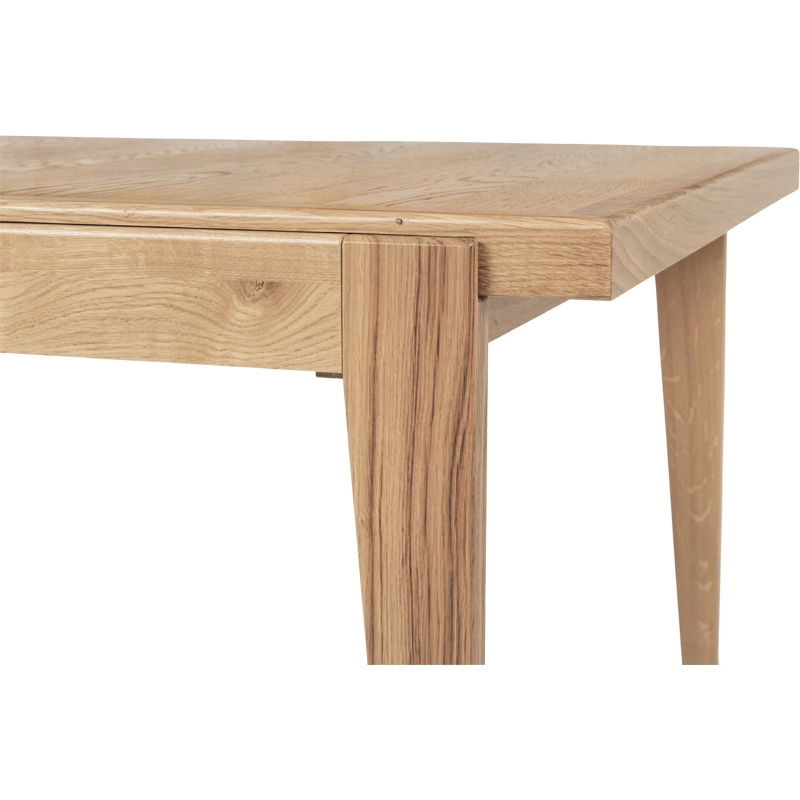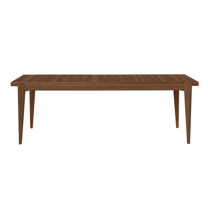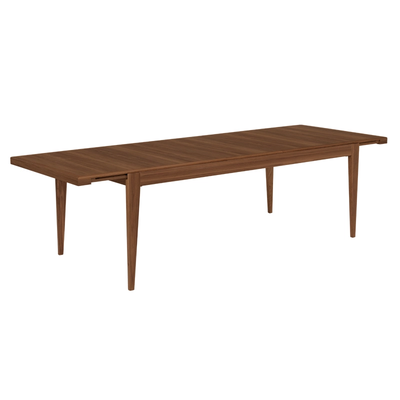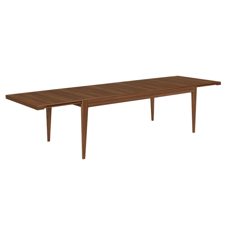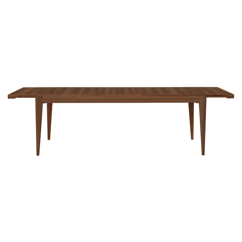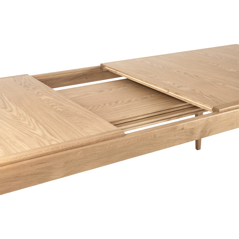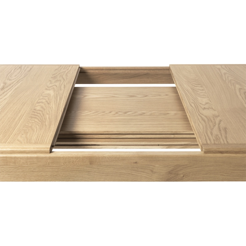 Le dessus de table rectangulaire coulisse pour permettre aux deux rallonges soigneusement dissimulées d'être insérées en place, offrant des options pour six, huit ou dix convives. La