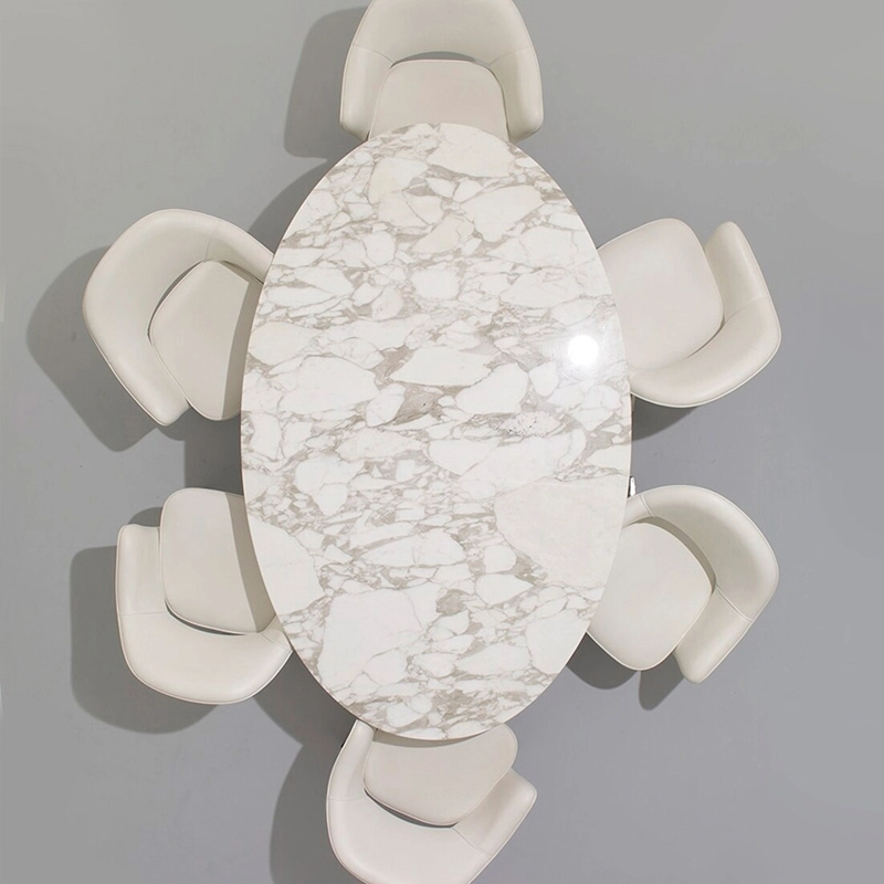marbre est recouvert d'un vernis polyester transparent, protégeant la table des tâches.