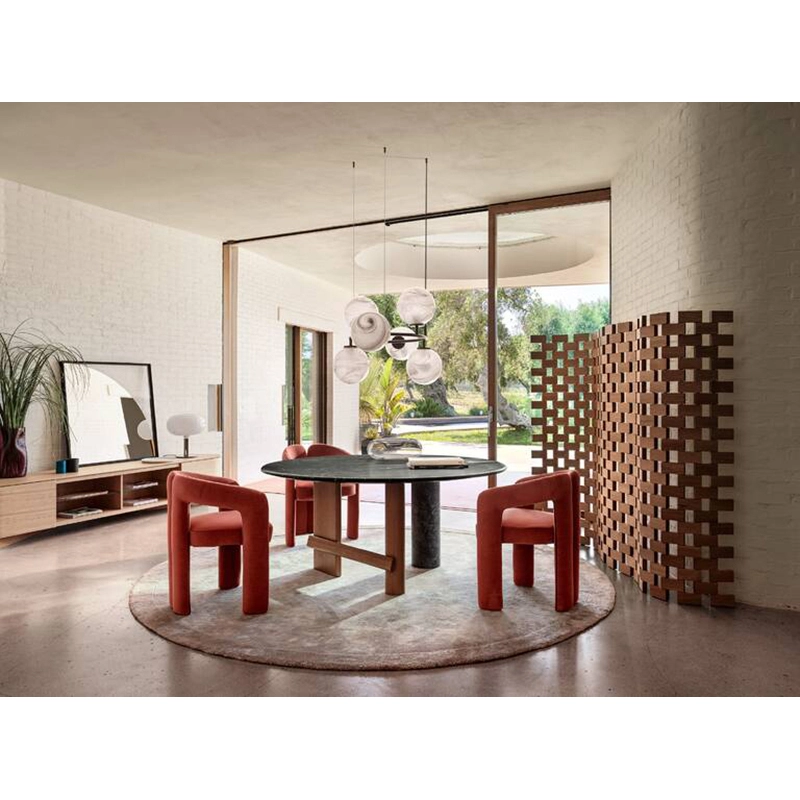Au sein de la collection de meubles Sengu éditée par Cassina, la table ronde Sengu célèbre la convivialité à travers une fusion poétique de matériaux variés, créant une sensation tactile et visuelle puissante. Disponible en forme ovale ou ronde, cette table se caractérise par ses contrastes de matériaux et de formes. La table Sengu incarne une fusion harmonieuse de matériaux et de formes, créant une pièce de mobilier conviviale, accueillante et adaptée à de nombreux espaces.