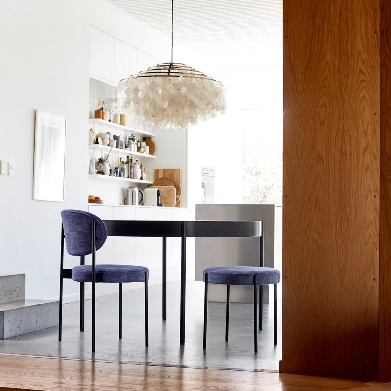 Avec Series 430, Verner Panton a conçu une table ronde qui met tout le monde au centre et maximise la convivialité. Créée en 1967 et toujours actuelle, elle est suffisamment légère pour que vous puissiez la déplacer selon vos besoins pour s'adapter à différentes utilisations : table de repas dans la salle à manger, une table pour jouer aux cartes dans le salon ou à une surface de travail supplémentaire dans la cuisine. Disponible en Fenix noir ou blanc et déclinée en deux diamètres, la table Series 430 trouve sa place dans tous les styles d'intérieurs, grâce à ses lignes épurées?