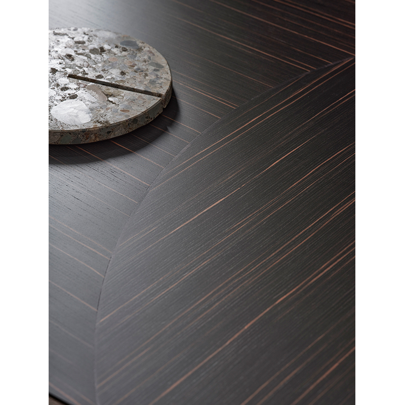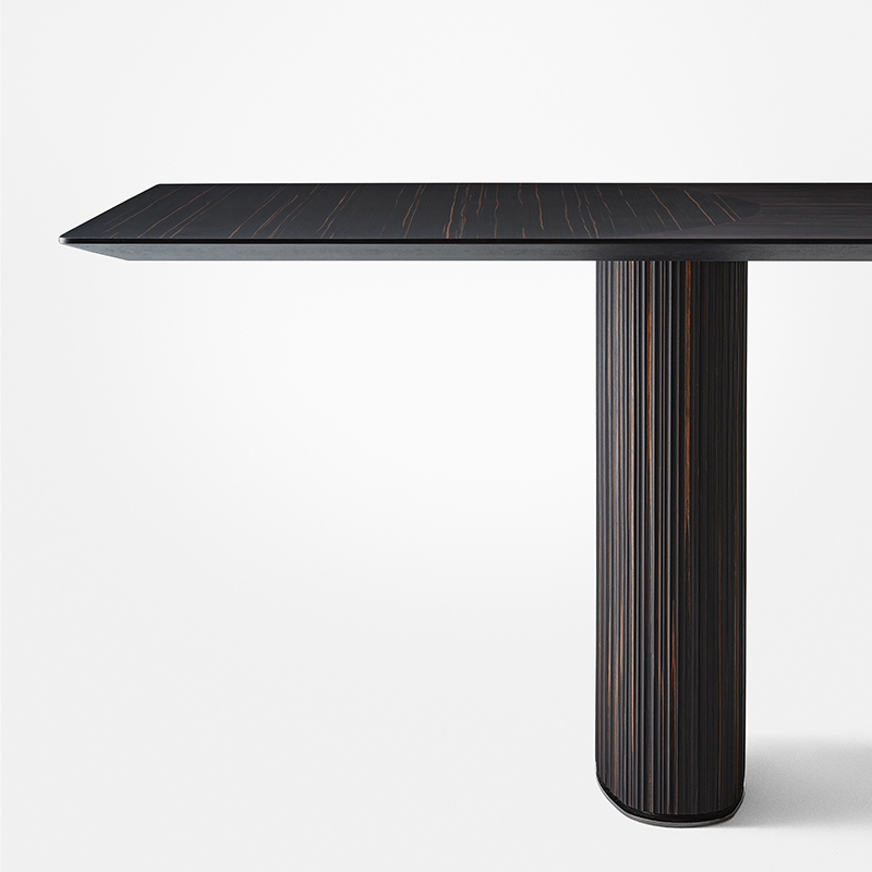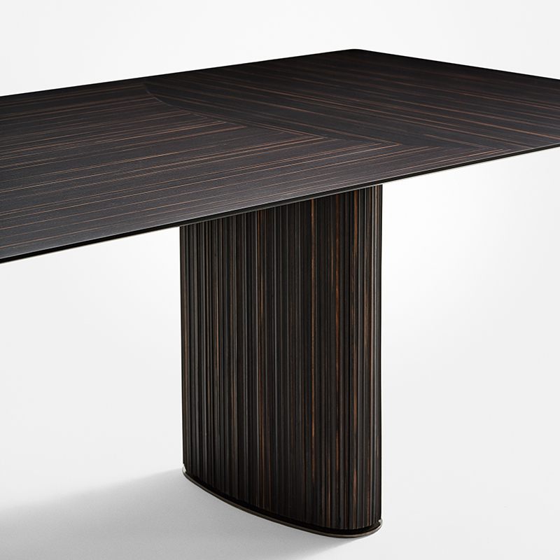 La table Shiro est signée Oscar et Gabriele Buratti pour Gallotti&Radice. Avec son plateau en bois d'ébène marqueté, la table Shiro s'impose avec élégance dans votre salon. Ses pieds de forme ovale sont également revêtus d'un bois massif d'ébène fraisé et de détails en métal noir chromé. Disponible en version rectangulaire ou arrondie, la table Shiro s'impose dans les salle à manger contemporaines.