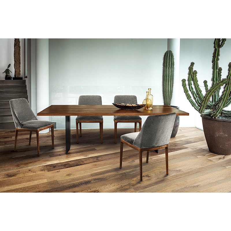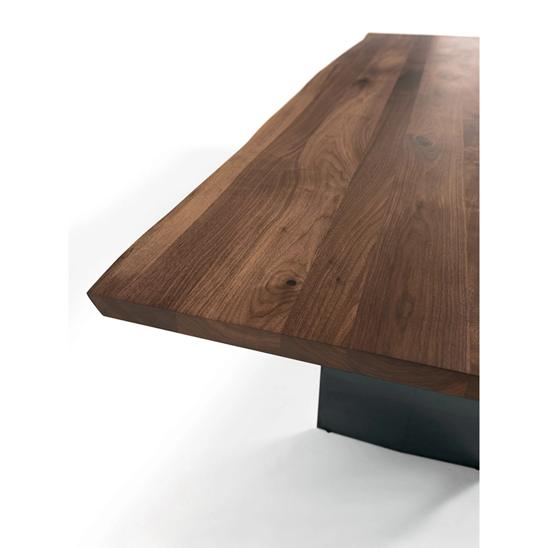 La table Sky-Natura Natural Sides de Riva 1920 incarne l'alliance parfaite entre naturel et contemporain. Son plateau en noyer massif, composé de lattes collées, expose élégamment les bords naturels. Les pieds en acier laqué irondust forment une tôle double pliée en losange, ajoutant une esthétique moderne et une solidité remarquable. Chaque détail reflète le savoir-faire de la maison italienne Riva 1920, mêlant la beauté du bois à la résistance de l'acier. Sky-Natura Natural Sides devient ainsi une pièce centrale, apportant à tout espace de vie une touche contemporaine et intemporelle.