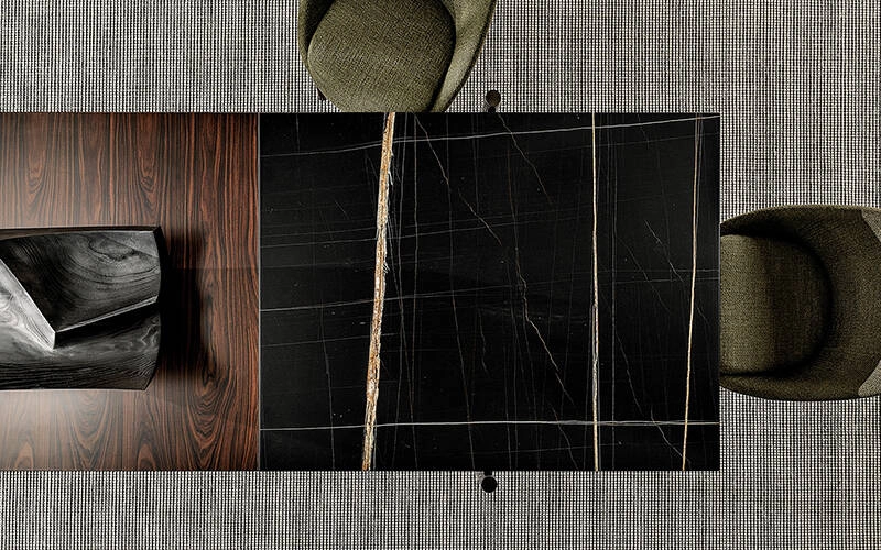 Se distinguant par sa forme rectangulaire, ses dimensions généreuses et ses lignes essentielles, la table Superquadra de Minotti est soutenue par quatre pieds en aluminium Brandy brillant. En saillie au ras du plateau, ses pieds lui confèrent un aspect éthéré. Minotti a décliné en 4 dimensions (de 250 cm à une longueur de 400 cm) la table Superquadra, se déclinant dans des versions qui mettent en valeur ses qualités esthétiques et matérielles : bois de palissandre Santos teinté Dark Brown laqué polyester mat, frêne flammé laqué Noir à pores ouverts et palissandre Santos teinté Dark Brown assorti avec du marbre Sahara Noir laqué polyester mat. La table Superquadra de Minotti donne originalité et personnalité aux espaces domestiques et professionnels par ses lignes.