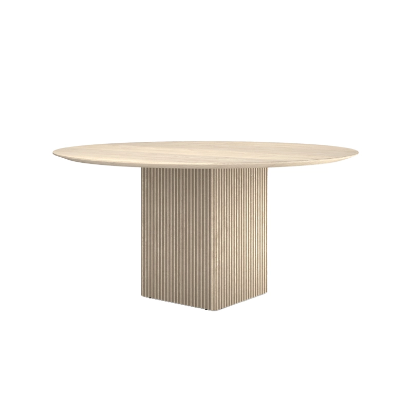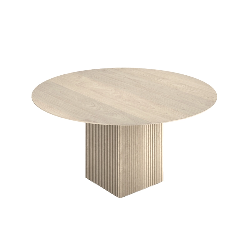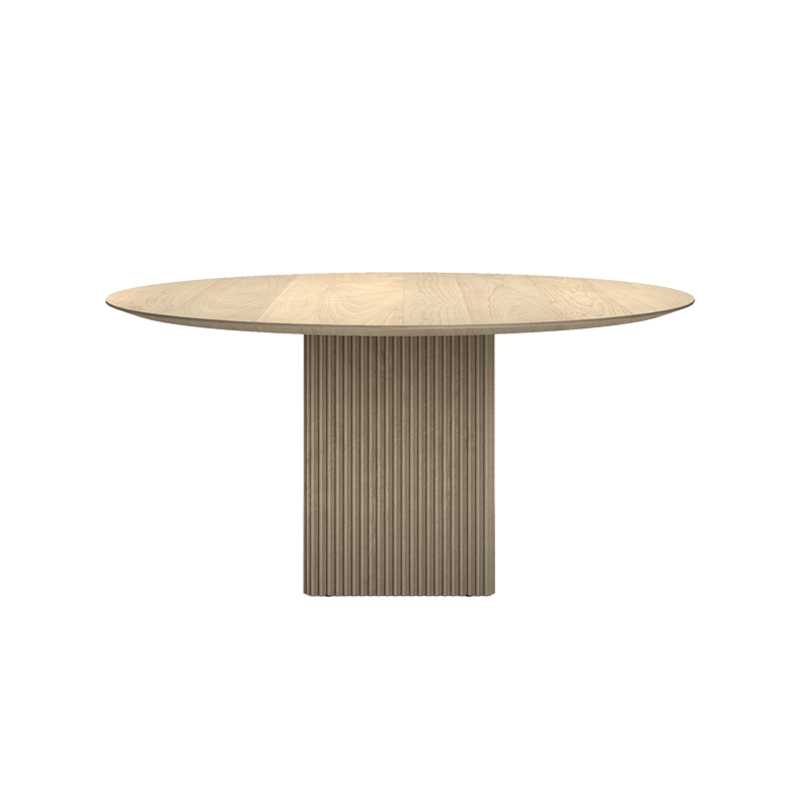 Le plateau et les pieds de Ten sont en bois massif, mais elle réussit à donner une sensation une légèreté, soulignée par les détails artisanaux raffinés comme les belles rainures verticales des pieds et le plateau de table distinctif aux formes organiques. La forme légèrement incurvée du plateau de table ne présente aucune ligne droite et, en combinaison avec le bord incliné de la table, il semble que le plateau bouge constamment, ce qui donne à la table Ten une expression unique.